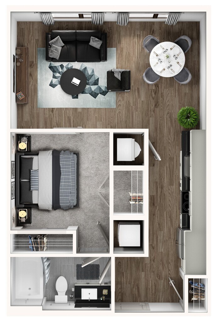 1 Dormitorio, 1 Baño, 699-726 pies²Disponible AhoraGalería del Modelo