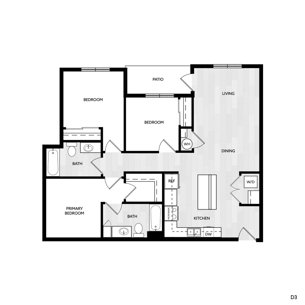 Modelo de apartamento: 1X1 Bedroom B1Desde $1,9601 Dormitorio, 1 Baño, 695 sq ftDisponible Ahora![]()