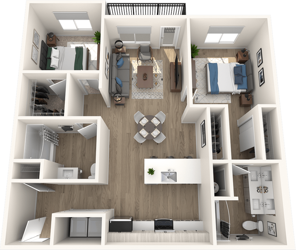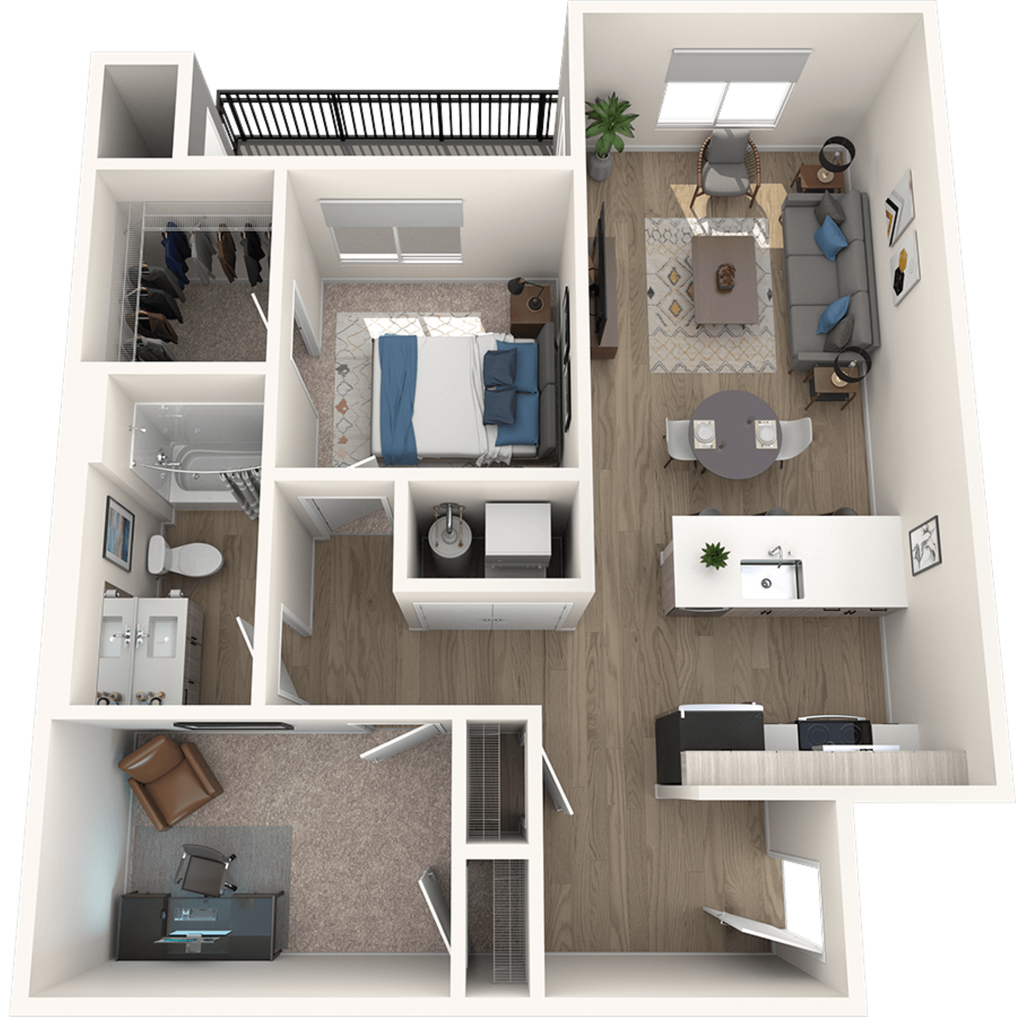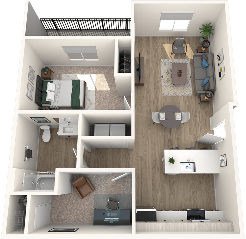 1 Dormitorio, 1 Baño, 861 pies²Disponible AhoraGalería del Modelo