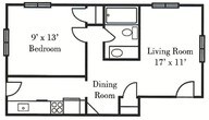 Modelo de apartamento: 1 Bed Upstairs Apartment$8951 Dormitorio, 1 Baño, 635 sq ftDisponible AhoraPlanosFotos![]()