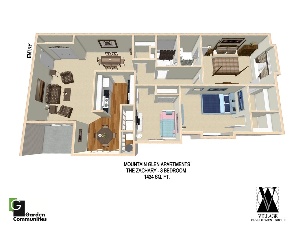 Modelo de apartamento: 3 BedroomDesde $2,4723 Dormitorios, 2 Baños, 1434 sq ftDisponible AhoraPlanosFotos![]()