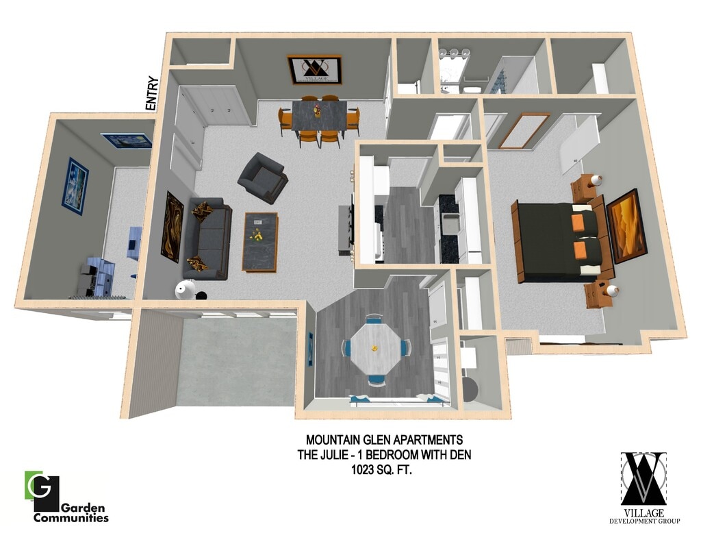 1 Dormitorio, 1 Baño, 1015 pies²Galería del Modelo