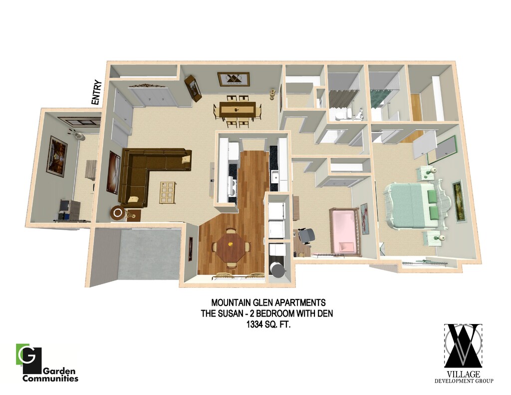 Modelo de apartamento: 2 Bedroom with denDesde $2,2222 Dormitorios, 2 Baños, 1334 sq ftDisponible Ahora![]()