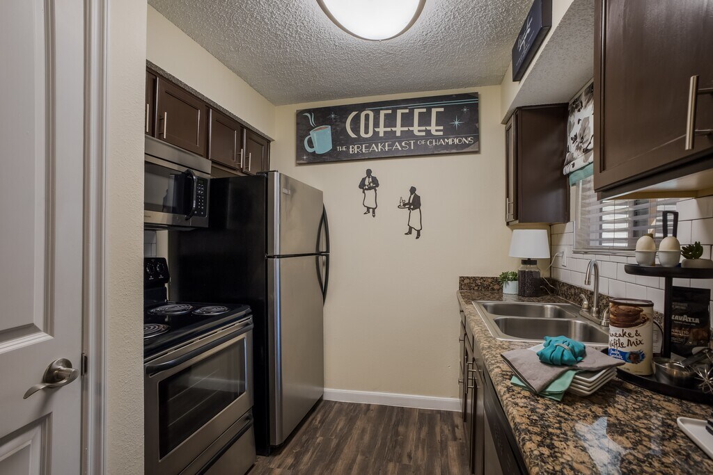 Apartamentos en Albuquerque. Escápate del ajetreo de la ciudad y disfruta de una vida tranquila en Mountain Run Apartments. Parte del pintoresco vecindario de Mesa Del Oso/Promenade, nuestro complejo cuenta con todos los lujos que te encantan de la vida moderna, junto con una ubicación cerca de escuelas de renombre, las principales carreteras y senderos para caminatas. Con comodidades de primer nivel, un programa de recompensas para residentes y lugares de ocio igualmente atractivos, nuestros apartamentos en Eubank Boulevard tienen todo lo que necesitas para desconectarte, recargar energías y prosperar. ¡También disponemos de contratos de arrendamiento a corto plazo! La relajación está a la vanguardia tan pronto como te mudes. Pasa tus días de descanso en la piscina climatizada y el spa o desafía a tus amigos a un partido en la cancha de básquetbol. Tenemos un salón para residentes donde puedes socializar con los vecinos, un centro de negocios para trabajar desde casa sin distracciones y una sala de cine para disfrutar de merecidas pausas. El exuberante paisaje es igual de relajante, junto con nuestro salón de baile y área de yoga donde puedes estirarte, bailar y relajarte. Si deseas estar aún más activo, también hay un gimnasio con equipos renovados. Leer más + Con apartamentos espaciosos de una y dos habitaciones, nuestros apartamentos de lujo en Albuquerque, NM, lo tienen todo. Alfombras suaves, gabinetes de madera de arce hechos a medida y amplios armarios te dan la bienvenida a casa, además de cocinas completamente equipadas con electrodomésticos de acero inoxidable. Los apartamentos seleccionados incluso tienen patios o balcones privados que se abren a hermosas vistas de las montañas, así como acogedoras chimeneas donde puedes ponerte cómodo en las noches frías. Además, también puedes disfrutar de elegantes servicios adicionales, como molduras de techo y techos altos en algunos de nuestros apartamentos. Estamos ubicados justo a la salida de Eubank Boulevard NE y Juan Tabo Boulevard NE, rodeados de Humber Humphrey Elementary y la Universidad de Nuevo México. Las principales empresas, como UNM Hospital y Kirtland Air Force Base son igual de fáciles de alcanzar, junto con el tren suburbano Los Ranchos-Journal Center para un transporte rápido. Si estás antojado de una escapada de fin de semana, estarás encantado de saber que Santa Fe está a solo una hora de distancia en auto. ¡Llámanos hoy para hacer un recorrido por nuestros apartamentos en el área 87111!