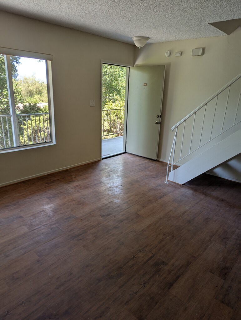 WHY SQUEEZE INTO A LITTLE APARTMENT WHEN YOU DON’T HAVE TO? Our beautiful 1 Bedroom / 1 Bathroom are over 700 feet & our 2 Bedroom / 1.5 Bathroom apartments are over 1,100 sq. ft. !!!! ALL APARTMENTS: * Large Living Room. * Faux hardwood floors. * Sliding mirrored wardrobe doors in bedrooms. * Air-conditioning. * Dramatic vaulted open-wood beamed ceilings. * Private balcony. * Stove, Refrigerator & Disposal. * Freshly repainted & cleaned. * Assigned parking spaces & carports with storage. * Minutes from schools, shopping & freeway. * Small pet okay (under 25 lbs.). * Laundry Machines available ADDED AMENITIES IN TWO-BBDROOM APARTMENTS: Everything Above Plus: * Two-level townhome style – means no one living over you! * Both bedrooms upstairs. * Eat in kitchen + Breakfast Bar + Dining Room. * Full size bathroom with tub/shower upstairs & half-bath downstairs. * Washer/Dryer hookups in your apartment.