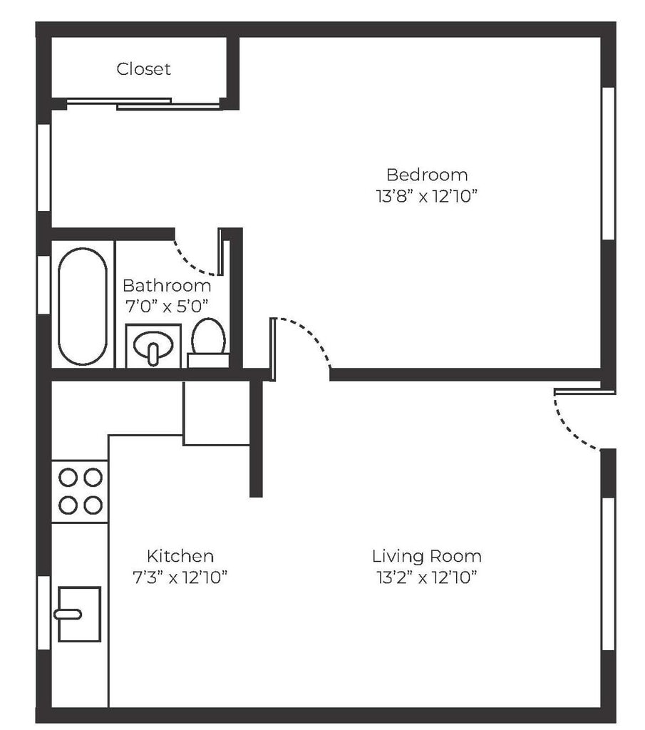 1 Dormitorio, 1 Baño, 520 pies²Disponible AhoraGalería del Modelo