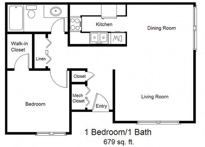 Modelo de apartamento: One Bedroom1 Dormitorio, 1 Baño, 679 sq ftNo Disponible![]()