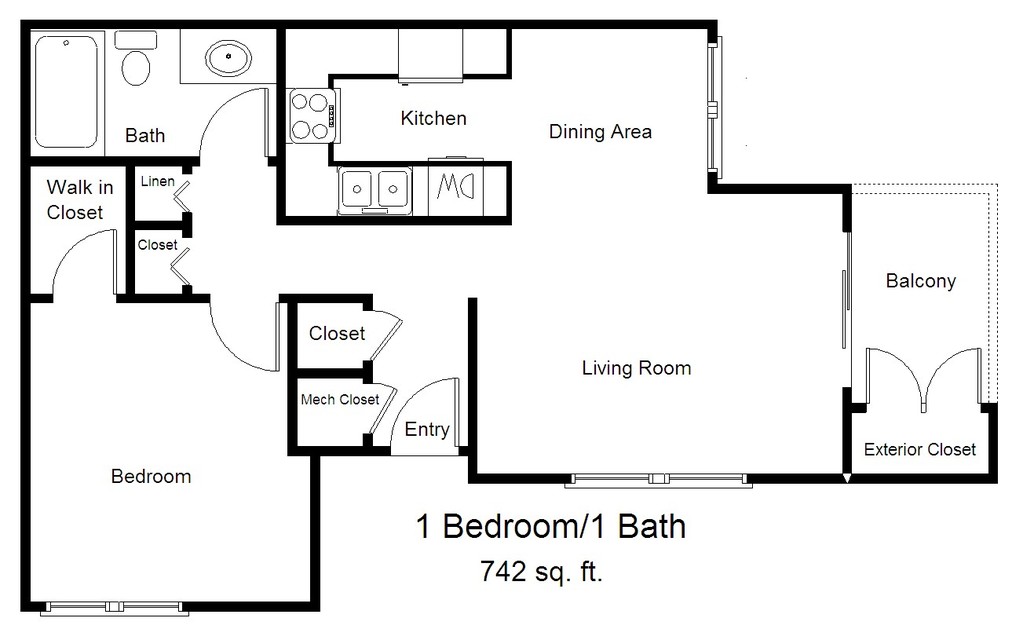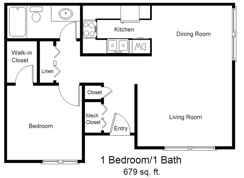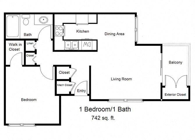 1 Dormitorio, 1 Baño, 679 pies²Galería del Modelo