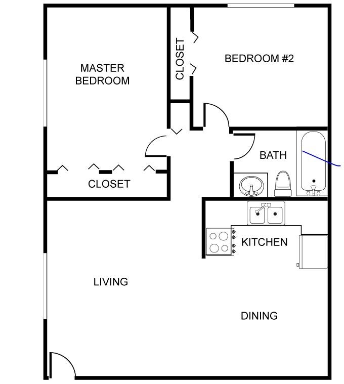 2 Dormitorios, 1 Baño, 880 pies²Galería del Modelo