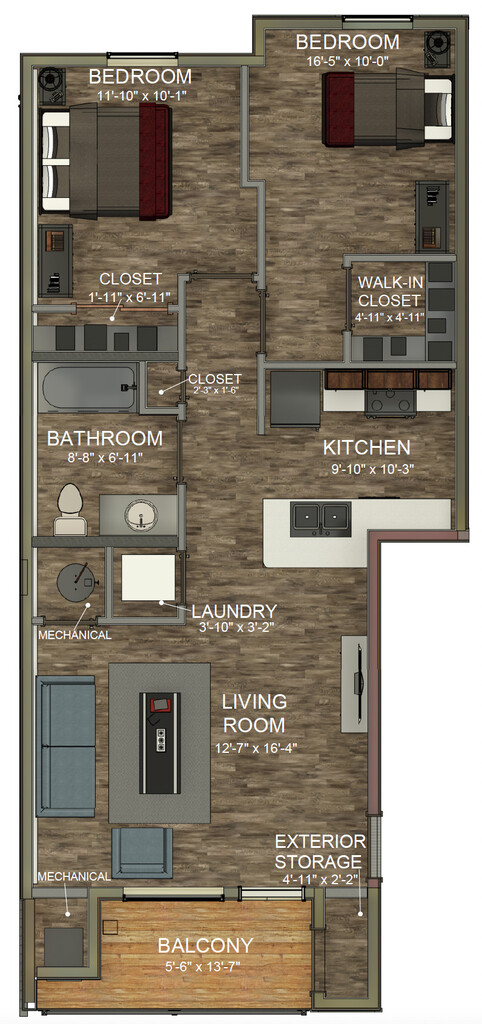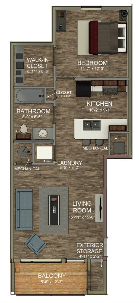 1 Dormitorio, 1 Baño, 754 pies²Disponible AhoraGalería del Modelo