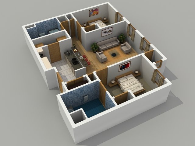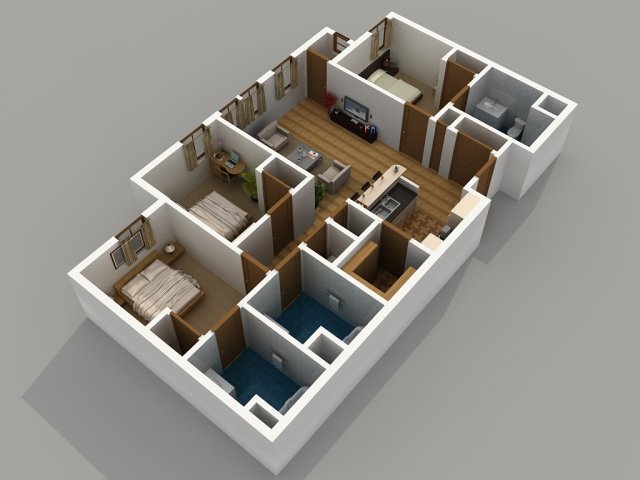 2 Bed, 2 Bath - Plano 1 3 Dormitorios