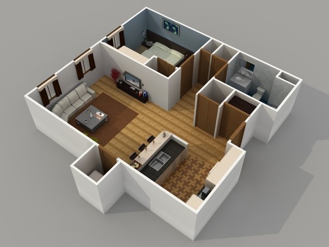 1 Bed, 1 Bath - Plano 1 1 Bed, Den