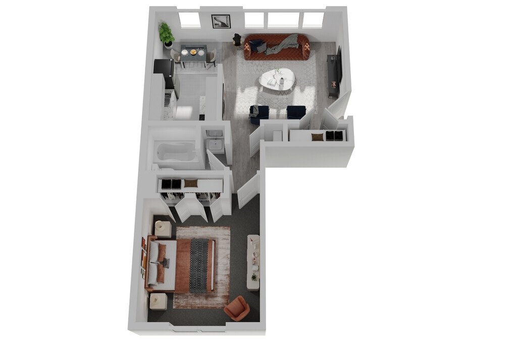 1 Dormitorio, 1 Baño, 615-630 pies²Disponible AhoraGalería del Modelo