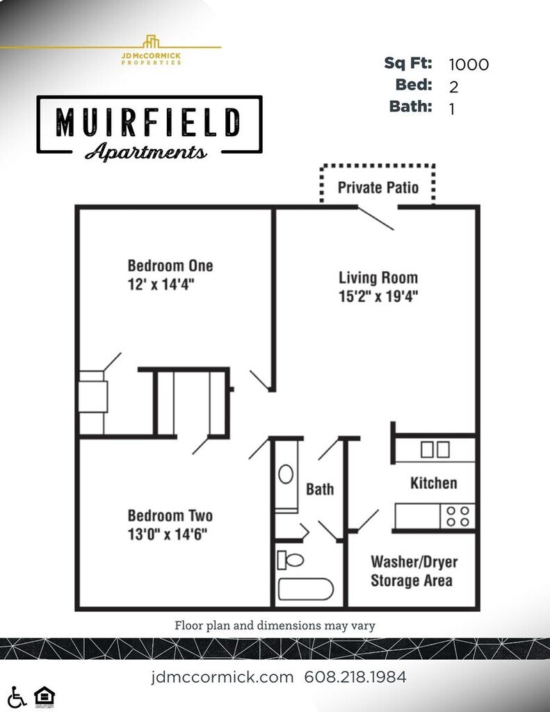 Muirfield Apartments ofrece apartamentos de 2 Dormitorios desde $1,575 con 1,000 pies cuadrados. Aquí está el precio actual y la disponibilidad: