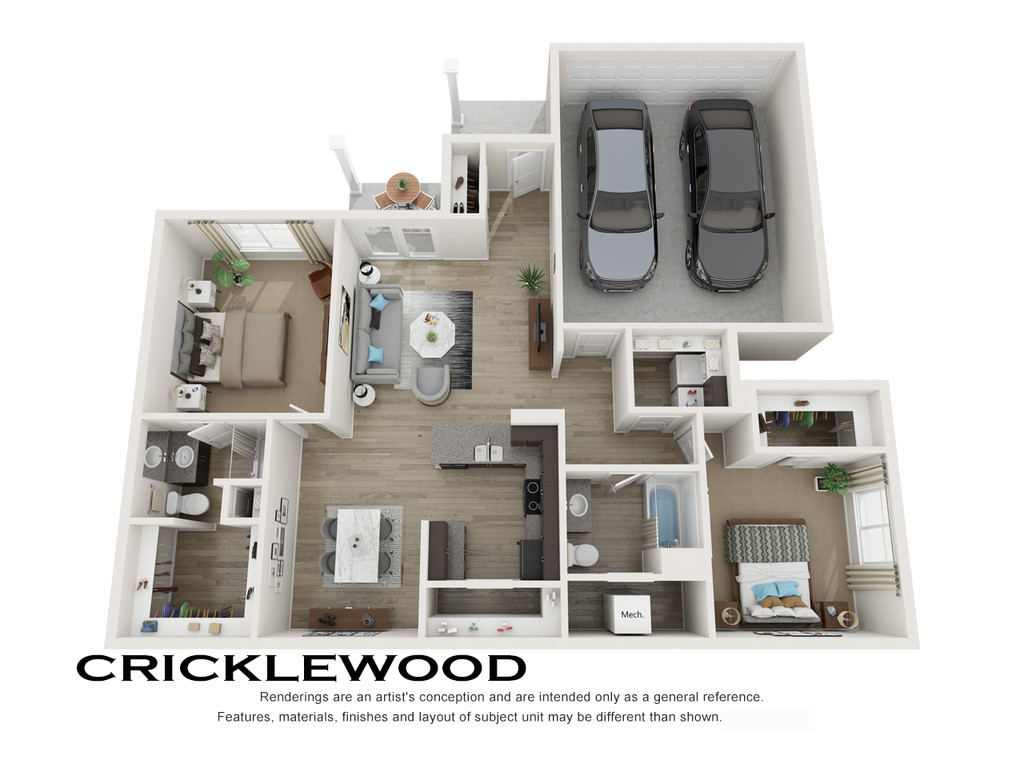 Modelo de apartamento: Cricklewood$1,4752 Dormitorios, 2 Baños, 1278 sq ftNo DisponibleCricklewood - Plano 1 Bentley