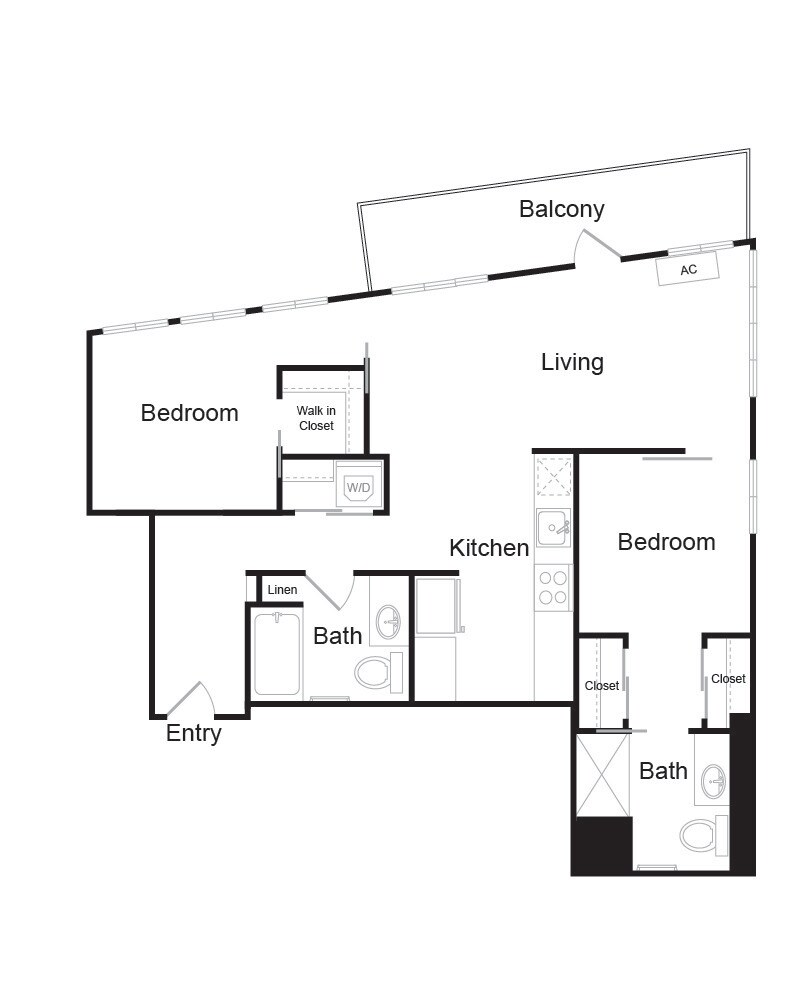 Modelo de apartamento: A1.3Desde $1,375Estudio, 1 Baño, 445 sq ftDisponible Ahora![]()