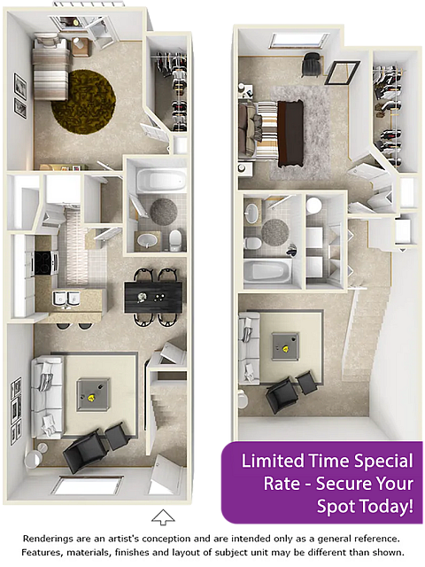 2 Dormitorios, 2 Baños, 1053 pies²Disponible AhoraGalería del Modelo