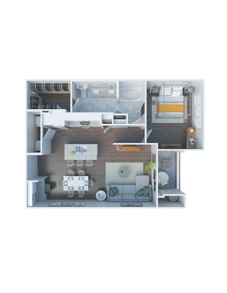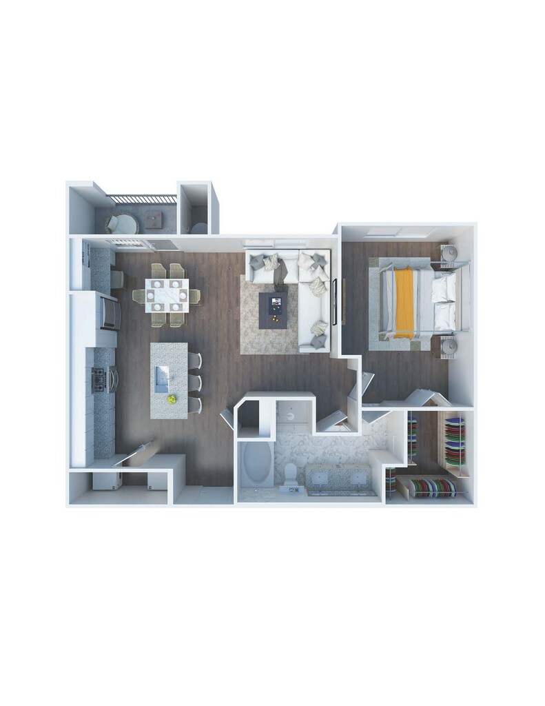 Modelo de apartamento: 1 Bed 1 BathDesde $1,3501 Dormitorio, 1 Baño, 786 sq ftDisponible Ahora![]()