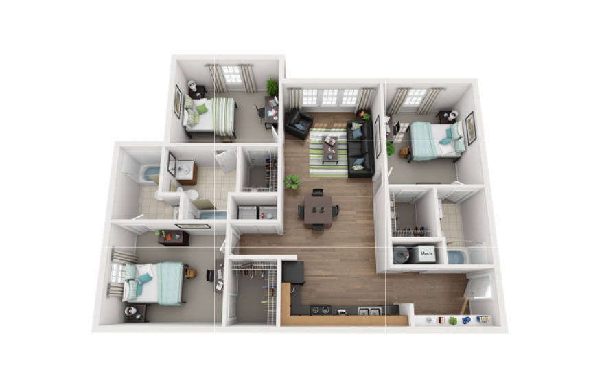 Modelo de apartamento: 3 Bed / 3 BathDesde $5253 Dormitorios, 3 Baños, 1200 sq ftDisponible Ahora![]()