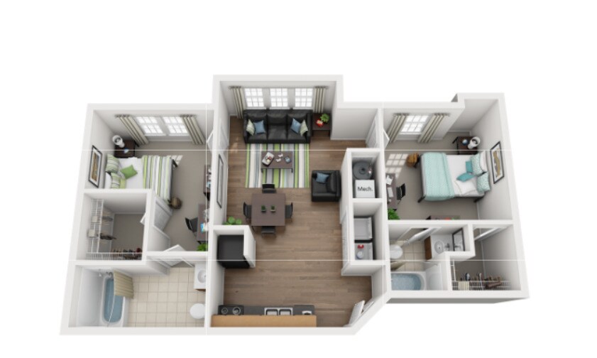 2 Dormitorios, 2 Baños, 800 pies²Disponible AhoraGalería del Modelo