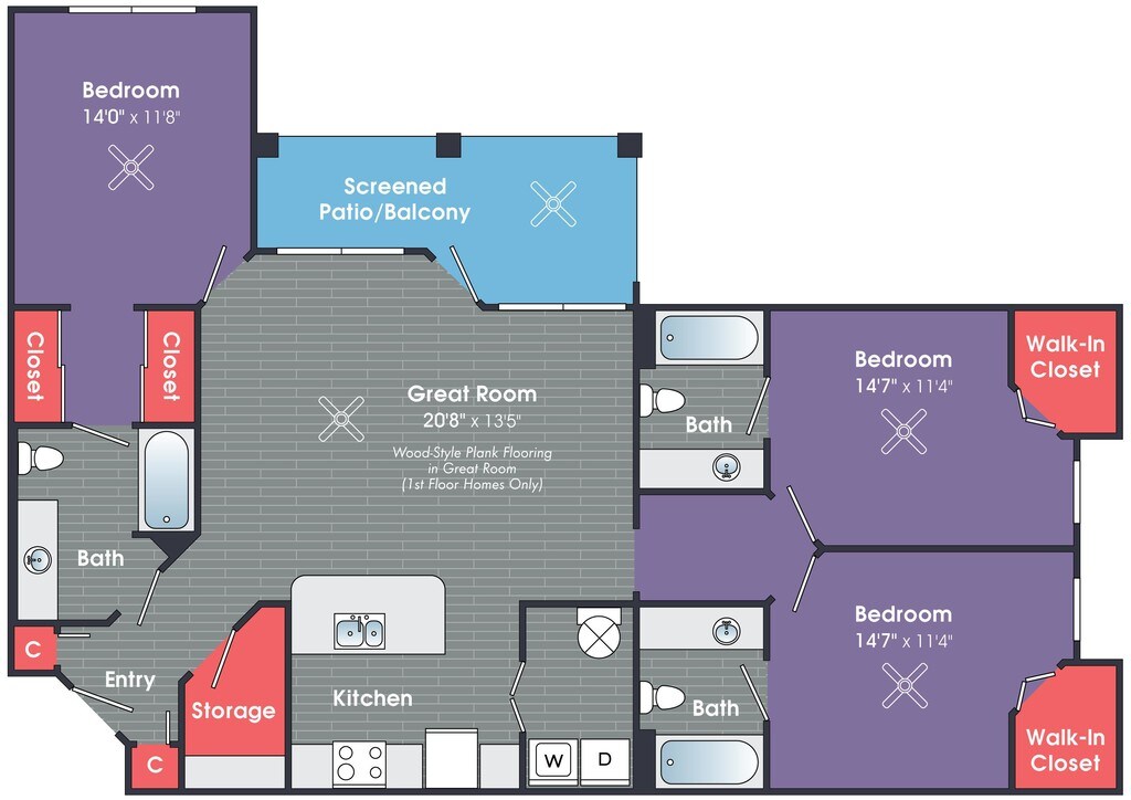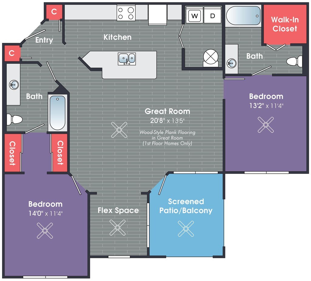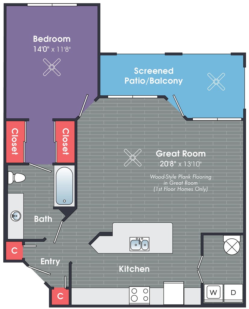 Modelo de apartamento: AegeanDesde $1,5591 Dormitorio, 1 Baño, 507 sq ftDisponible Ahora![]()