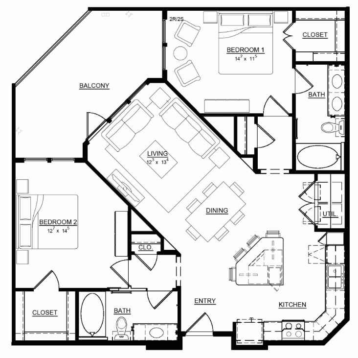 2 Dormitorios, 2 Baños, 1170 pies²Galería del Modelo