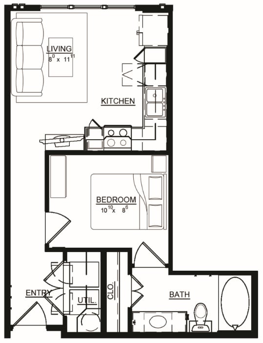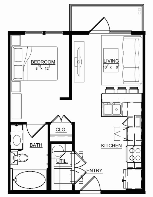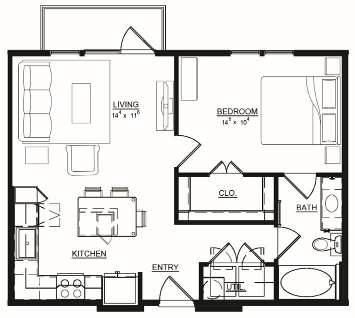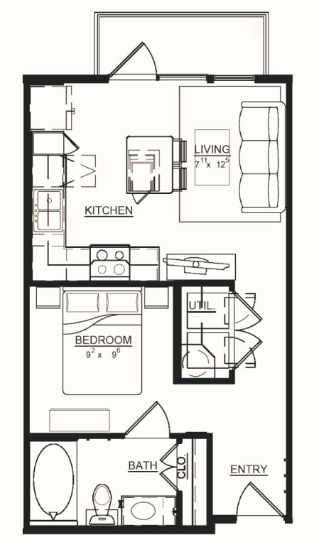 1 Dormitorio, 1 Baño, 500 pies²Galería del Modelo