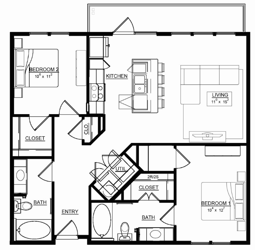 2 Dormitorios, 2 Baños, 1020 pies²Galería del Modelo