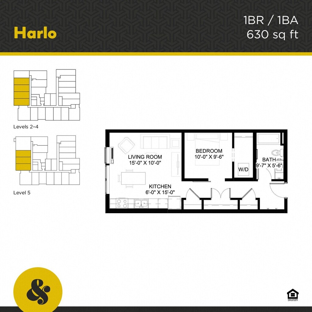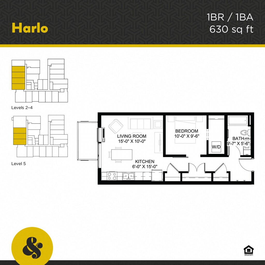 Harlo - Plano 7 Unidad de apartamento: 208Modelo de apartamento: Harlo$1,5951 Dormitorio, 1 Baño, 630 sq ftDisponible Ahora![]()
