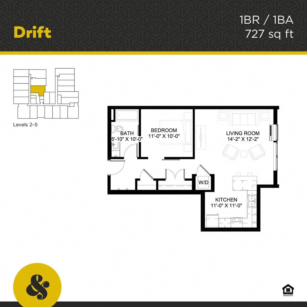 Modelo de apartamento: DriftDesde $1,6691 Dormitorio, 1 Baño, 727 sq ftDisponible December 4, 2025![]()