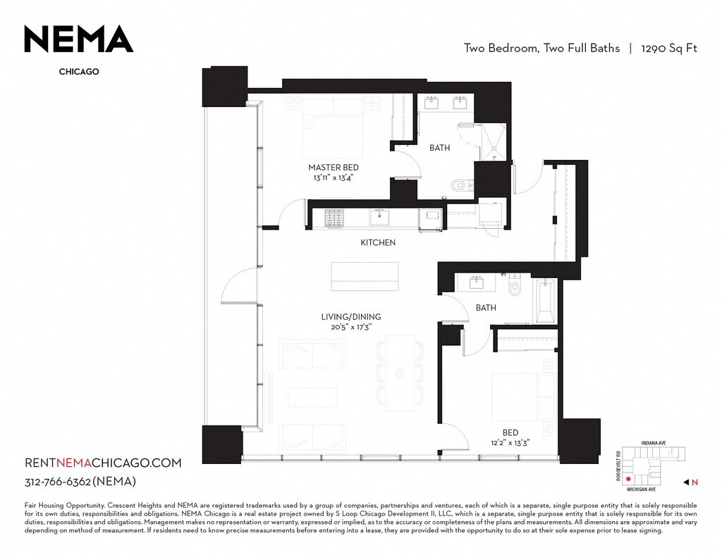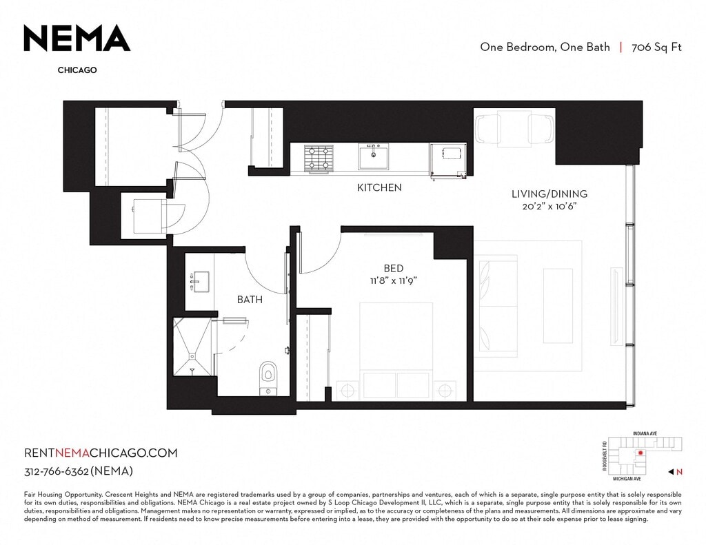 NEMA Chicago se encuentra en el Barrio Grant Park y el código postal 60605 de Chicago, IL. Esta comunidad está gestionada profesionalmente por CH Management Services, LLC