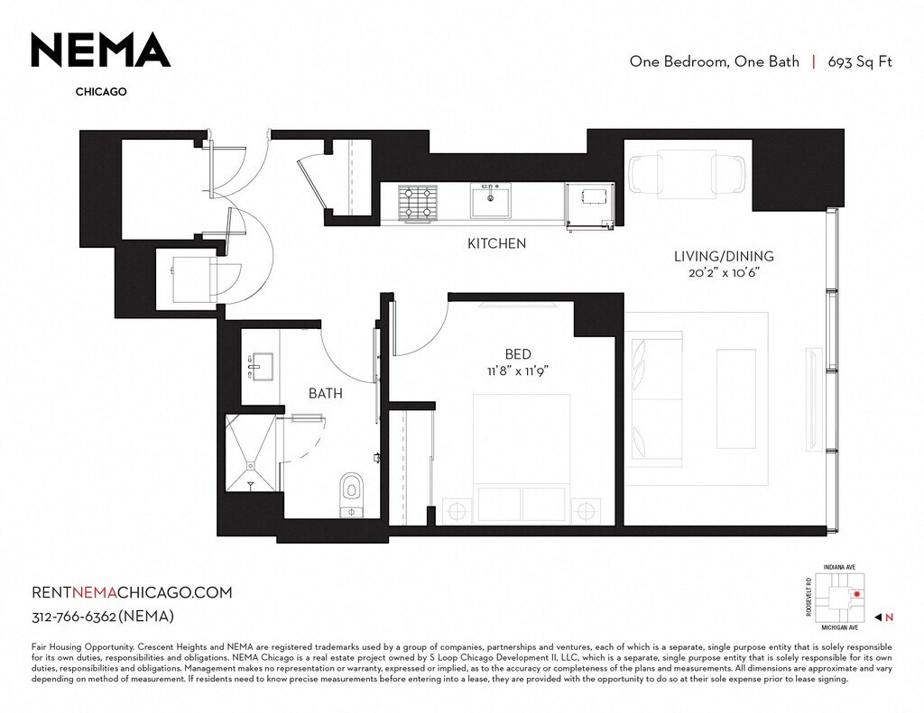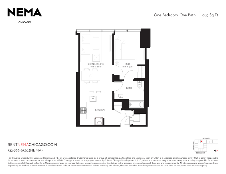 Todo lo que necesitas ya está en tu hogar. La residencia en alquiler más alta de la ciudad, NEMA Chicago, es un ícono arquitectónico de 76 pisos, ubicado en Grant Park, diseñado por Rafael Vinoly y David Rockwell, con vistas sin precedentes del lago, del parque y de la ciudad. La colección de comodidades de 70,000 ft² de NEMA se complementa con servicios tecnológicos y un estilo de vida personalizado, que ofrece un calendario completo de eventos exclusivos para residentes y más de 12 clases semanales de gimnasia. Las residencias precableadas para ser inteligentes, que van desde estudios hasta cuatro habitaciones, son el lienzo perfecto para el confort personalizado y tienen amplias ventanas del piso al techo; muchos apartamentos también tienen grandes balcones y terrazas para esos momentos extraordinarios en la ciudad en calma y aire fresco. La codiciada ubicación de NEMA en la esquina de Michigan Ave y Roosevelt Rd del Grant Park hace que el llamado patio delantero de Chicago se convierta en el área de juegos de los residentes. Programa un recorrido virtual o en persona hoy mismo y descubre lo que hace de NEMA de un hogar mejorado.