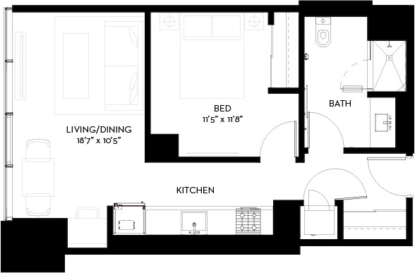 Estudio, 1 Baño, 582 pies²Disponible Nov 10El más grandeEsta opción tiene las unidades más grandes para este modeloGalería del Modelo