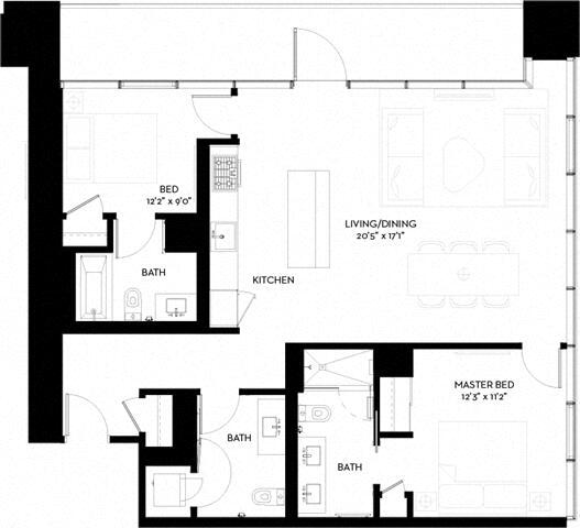 Modelo de apartamento: S-CDesde $2,525Estudio, 1 Baño, 582-585 sq ftDisponible Ahora![]()