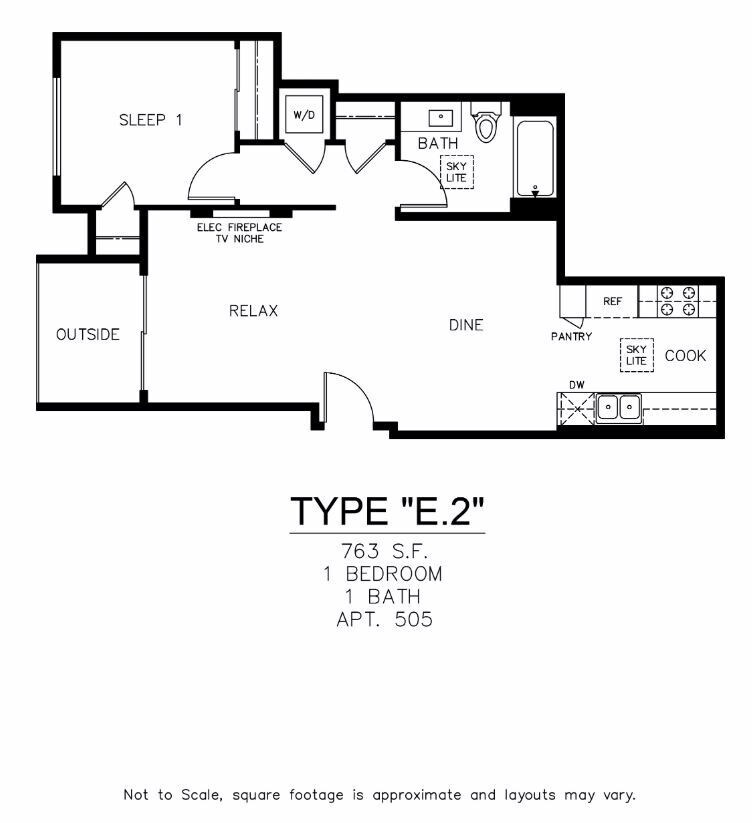 Type: E2 | 1 Bedroom | 1 Bathroom - Imagen 10 Unidad de apartamento: 505Modelo de apartamento: Type: E2 | 1 Bedroom | 1 Bathroom$2,6001 Dormitorio, 1 Baño, 763 sq ftDisponible Ahora