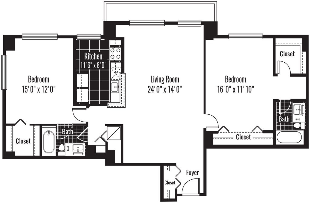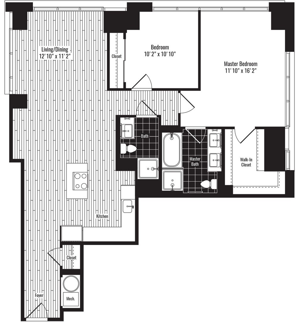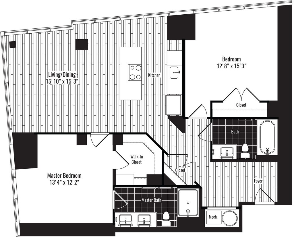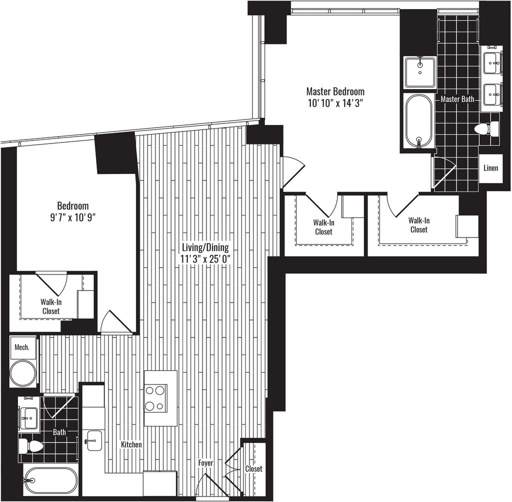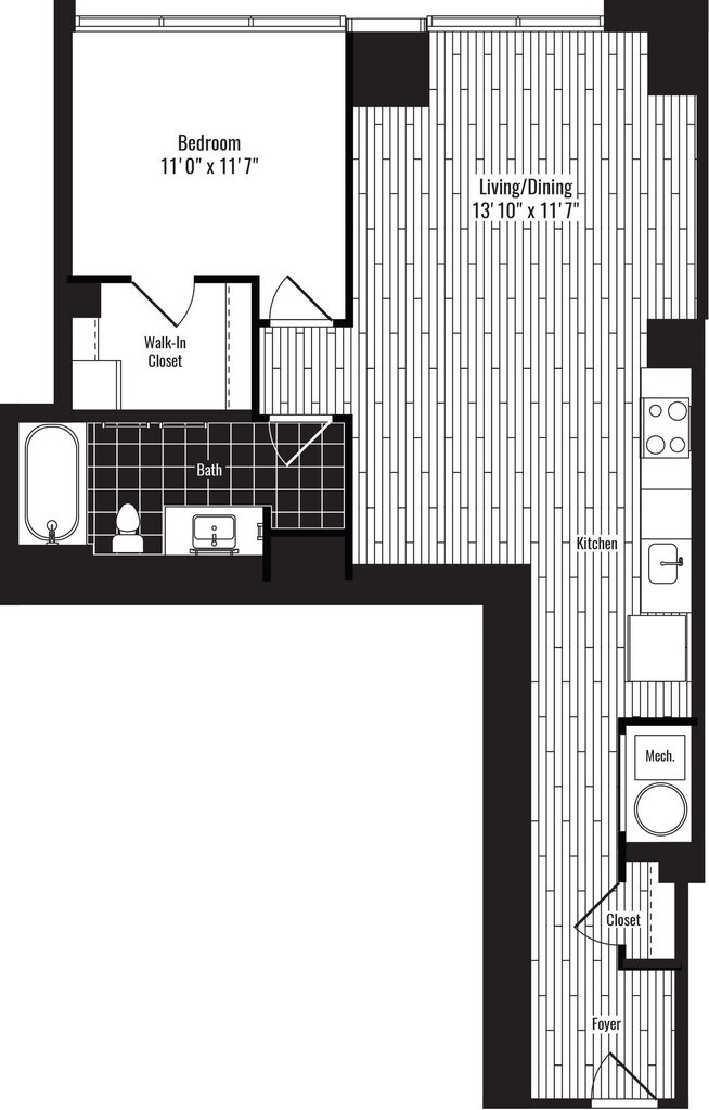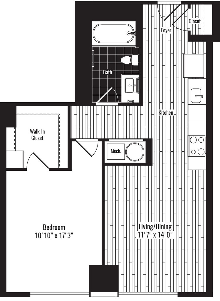 Modelo de apartamento: 1U1 Dormitorio, 1 Baño, 708 sq ftNo Disponible![]()