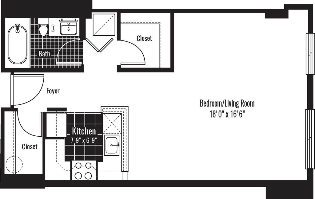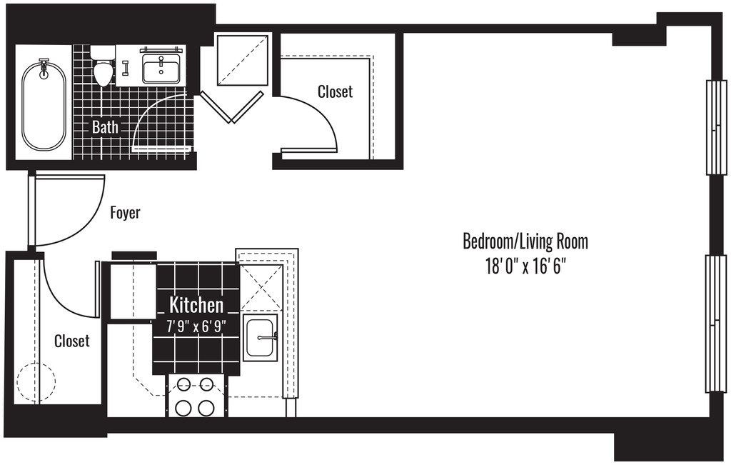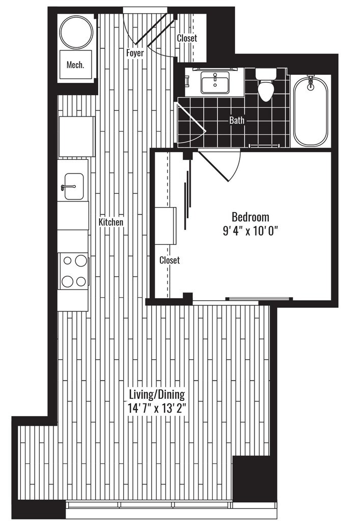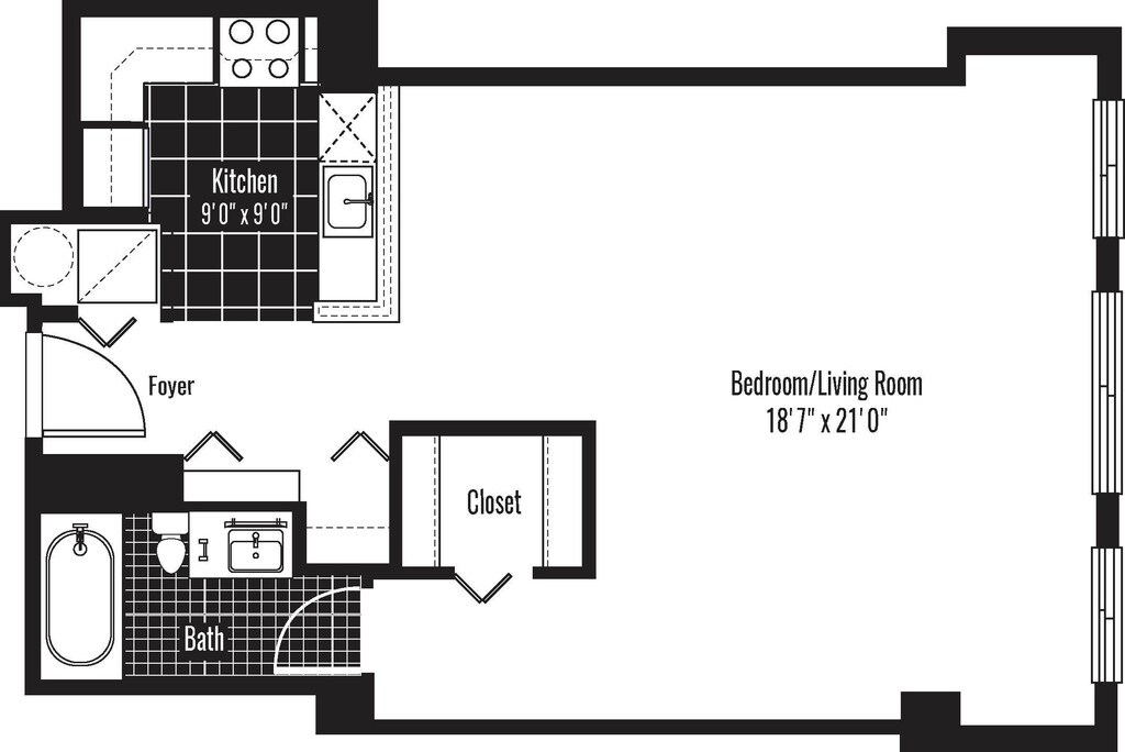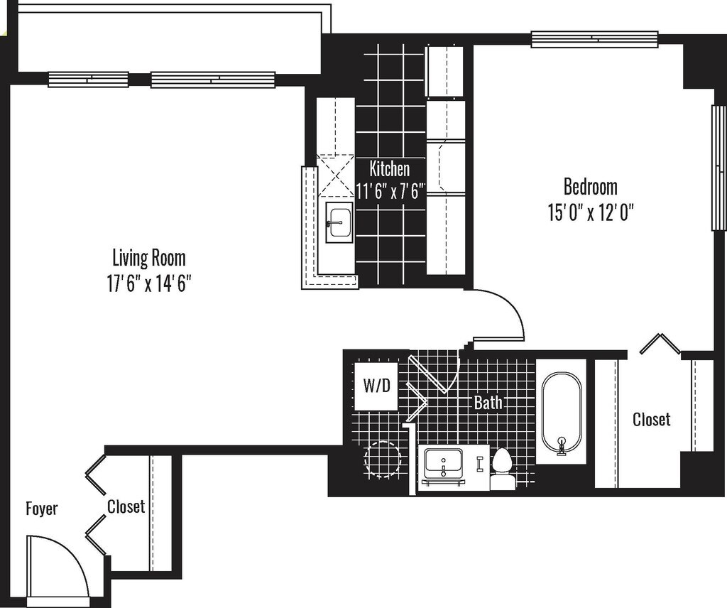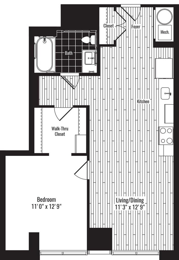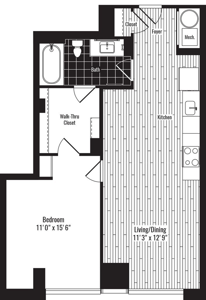 Modelo de apartamento: 1S1 Dormitorio, 1 Baño, 688 sq ftNo Disponible![]()