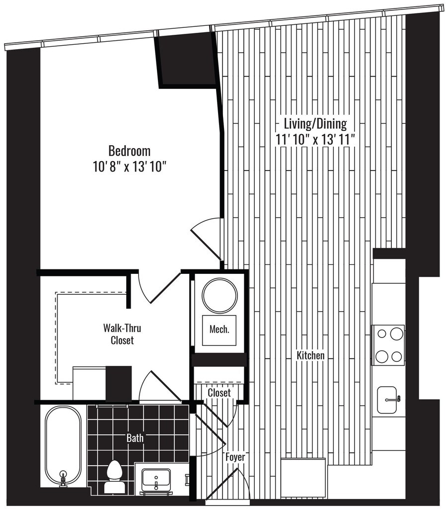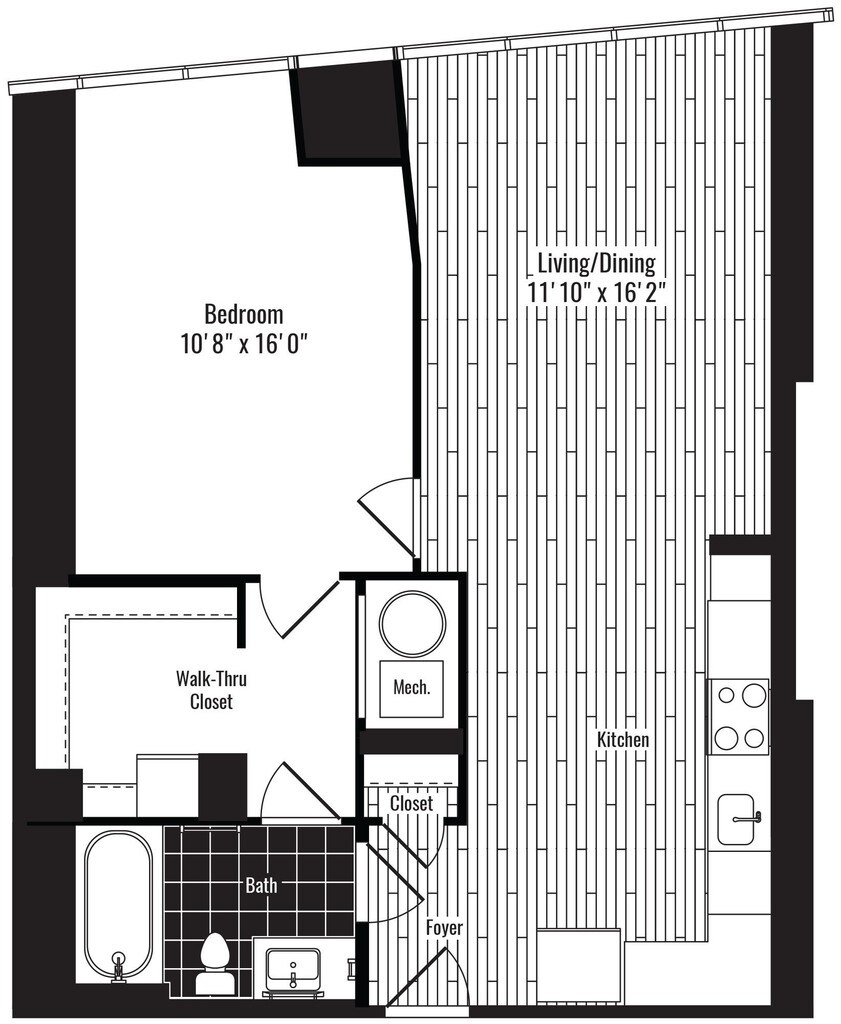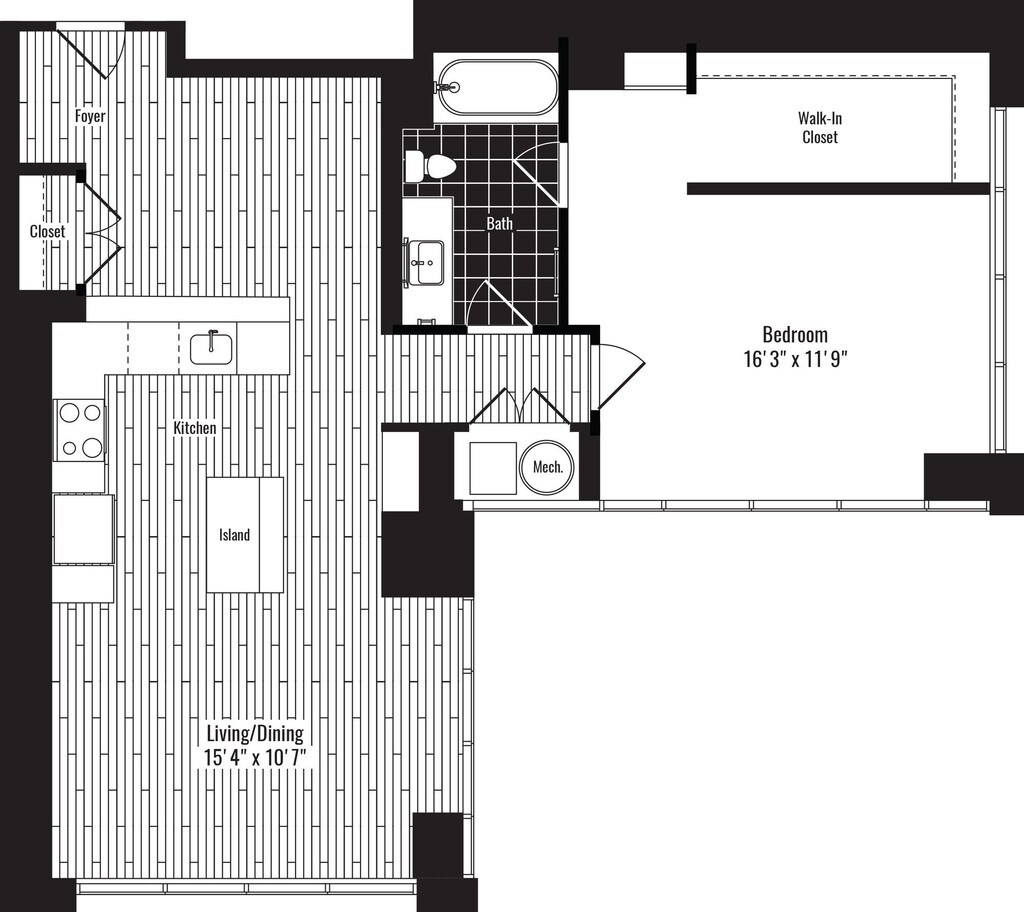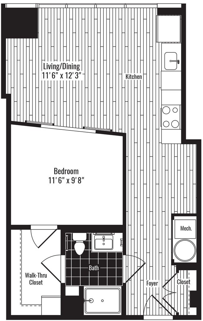 Modelo de apartamento: 1N1 Dormitorio, 1 Baño, 585 sq ftNo Disponible![]()