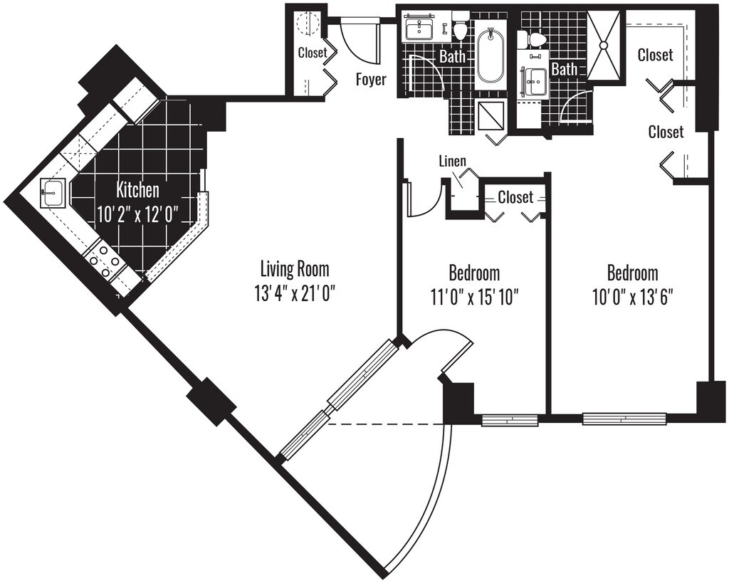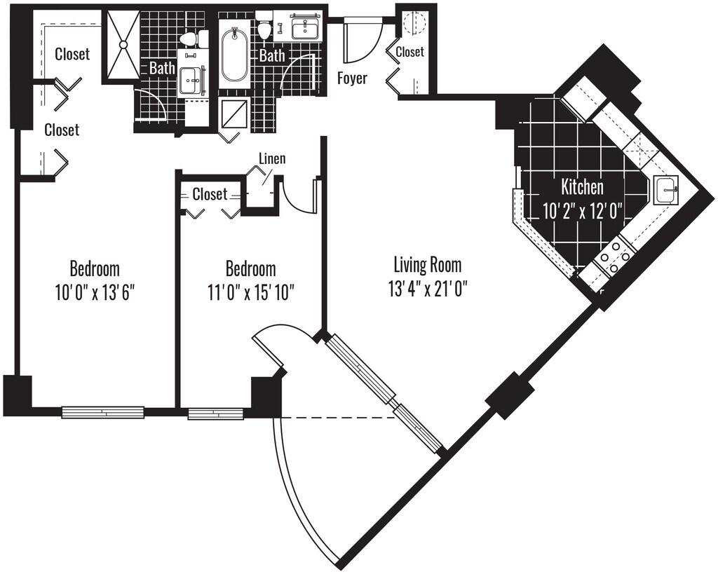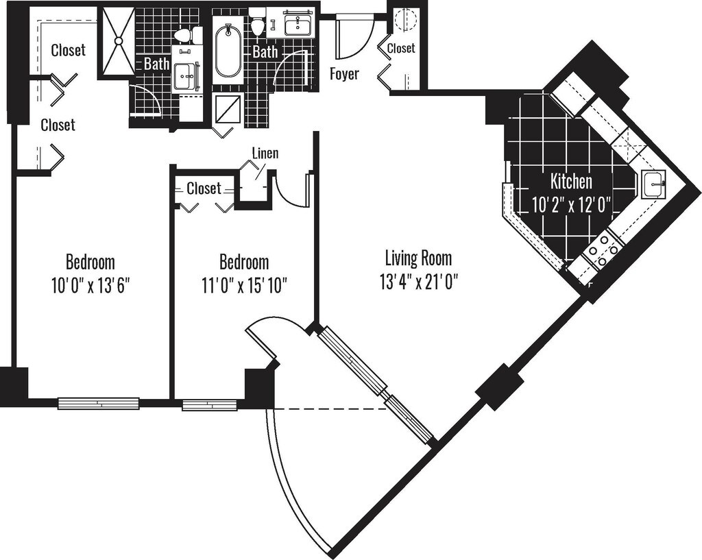 Modelo de apartamento: 1R1 Dormitorio, 1 Baño, 683 sq ftNo Disponible![]()