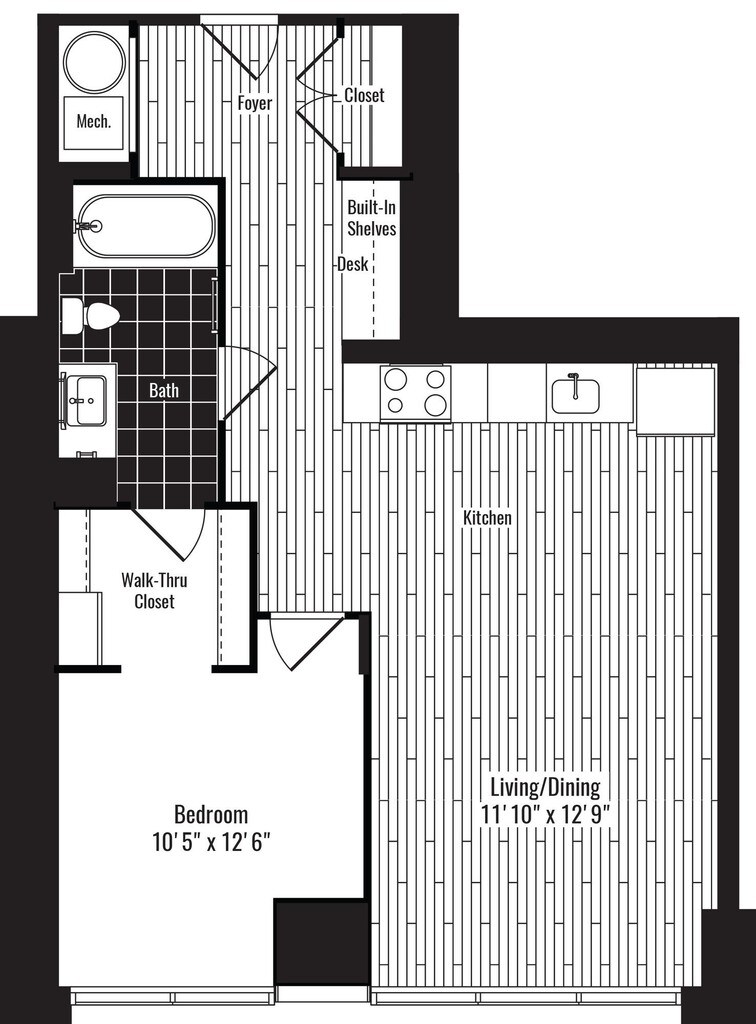 Modelo de apartamento: 1P1 Dormitorio, 1 Baño, 585 sq ftNo Disponible![]()