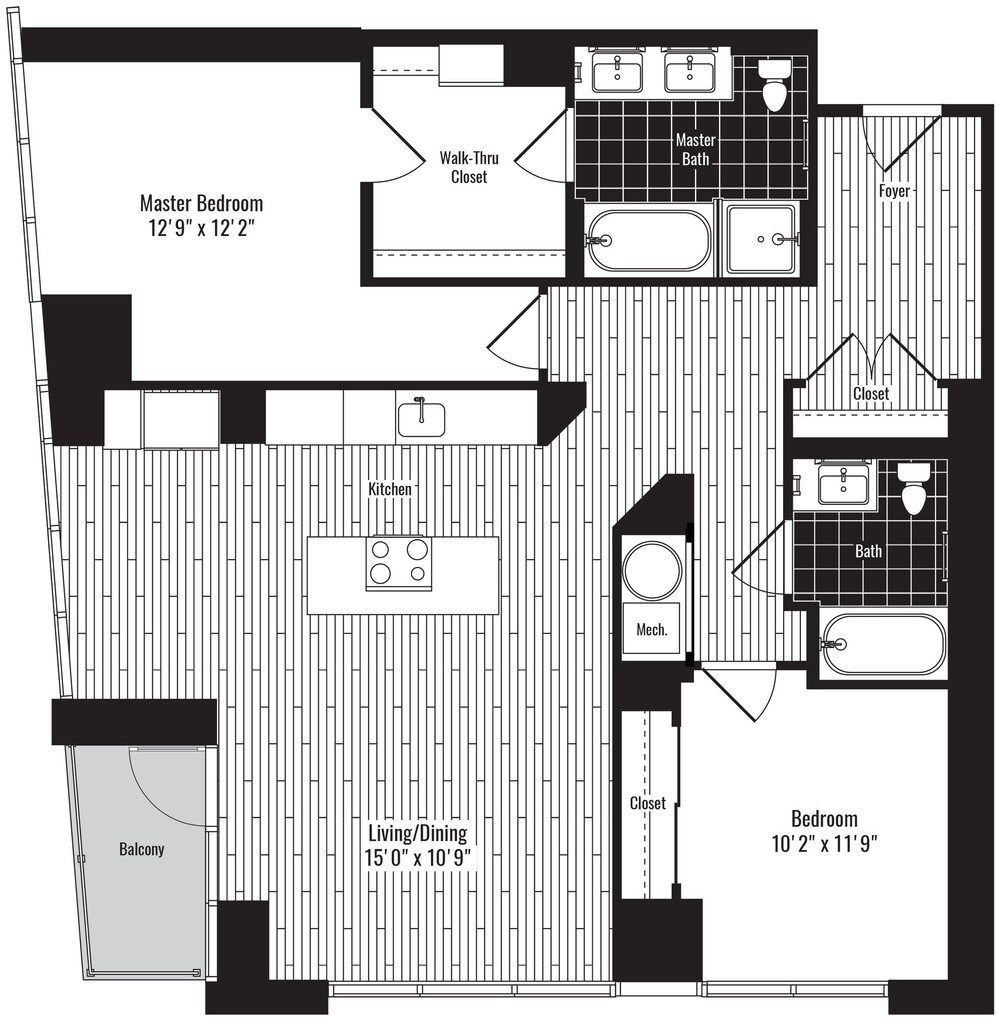 Modelo de apartamento: 1T1 Dormitorio, 1 Baño, 697 sq ftNo Disponible![]()