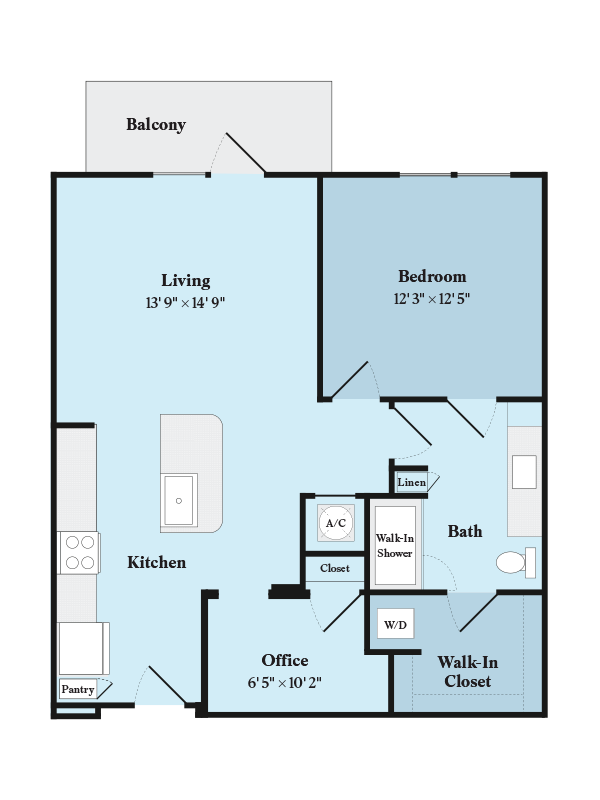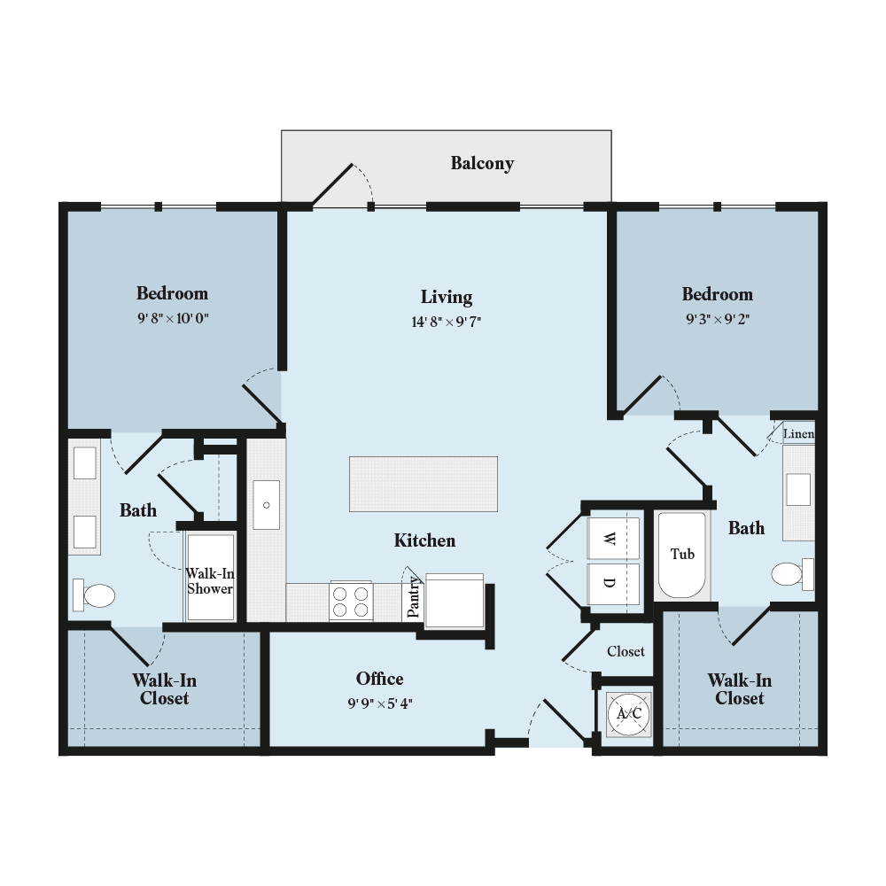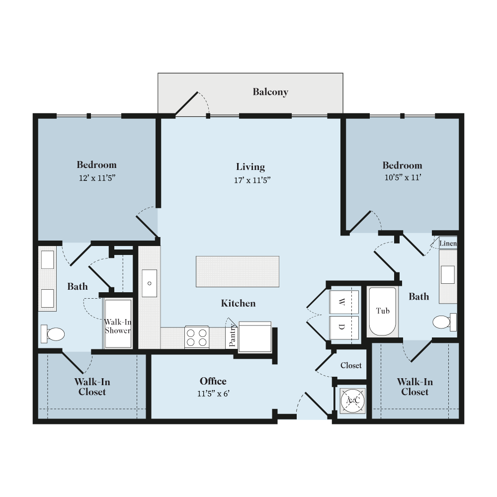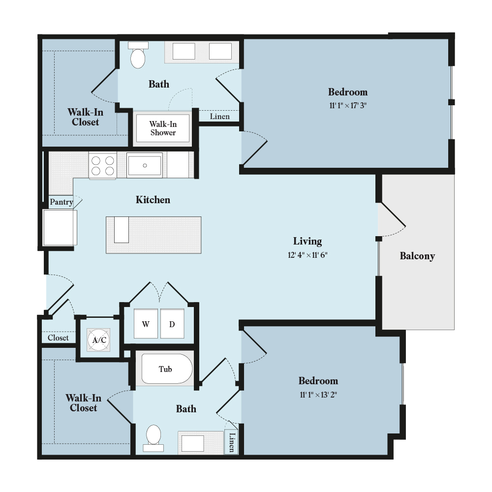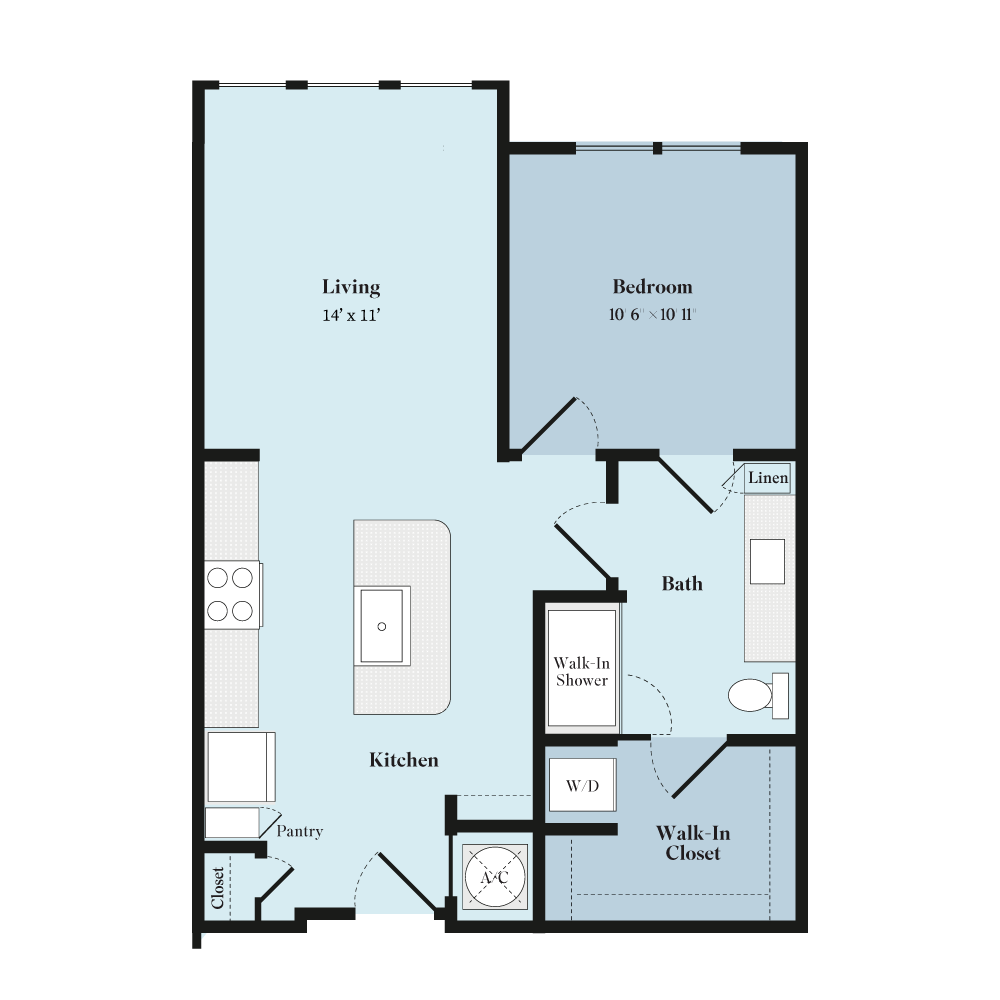 Modelo de apartamento: A5Desde $1,7841 Dormitorio, 1 Baño, 697 sq ftDisponible Ahora![]()