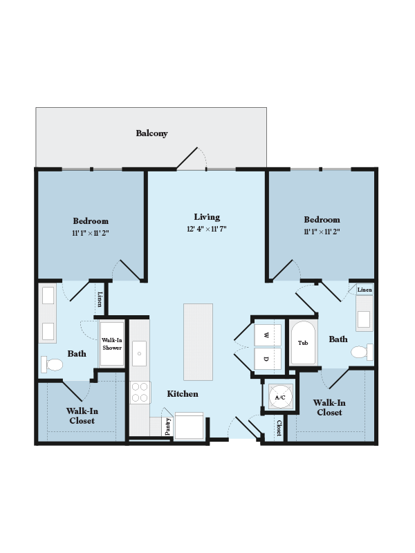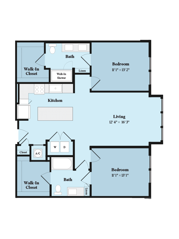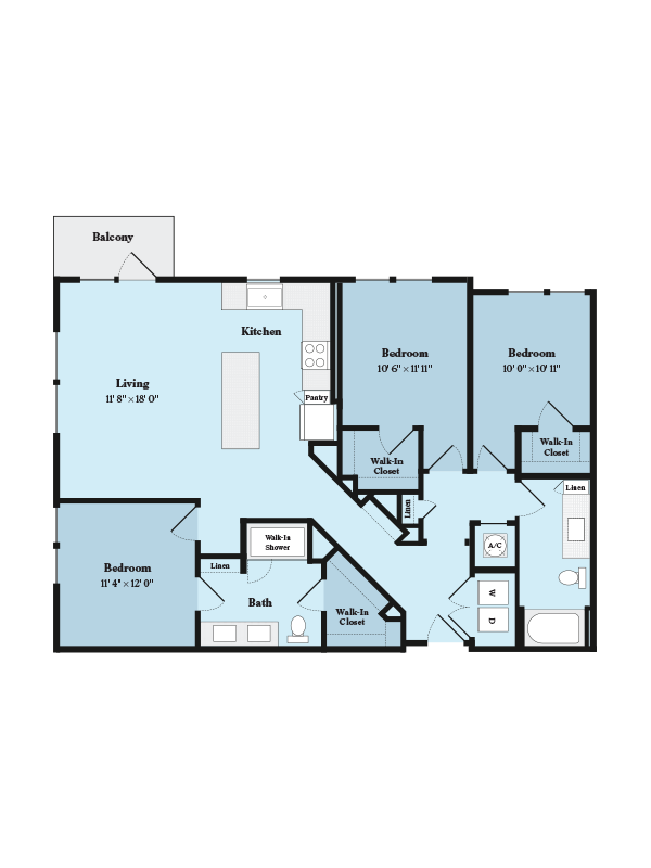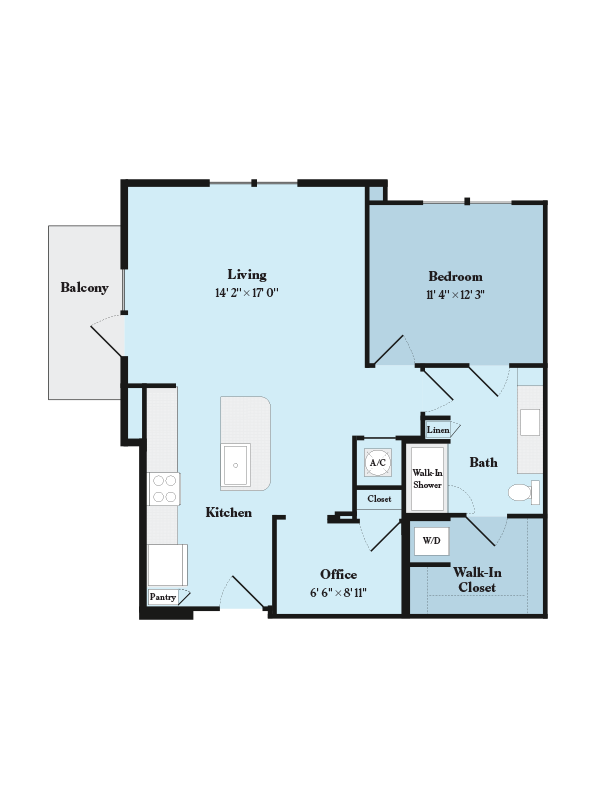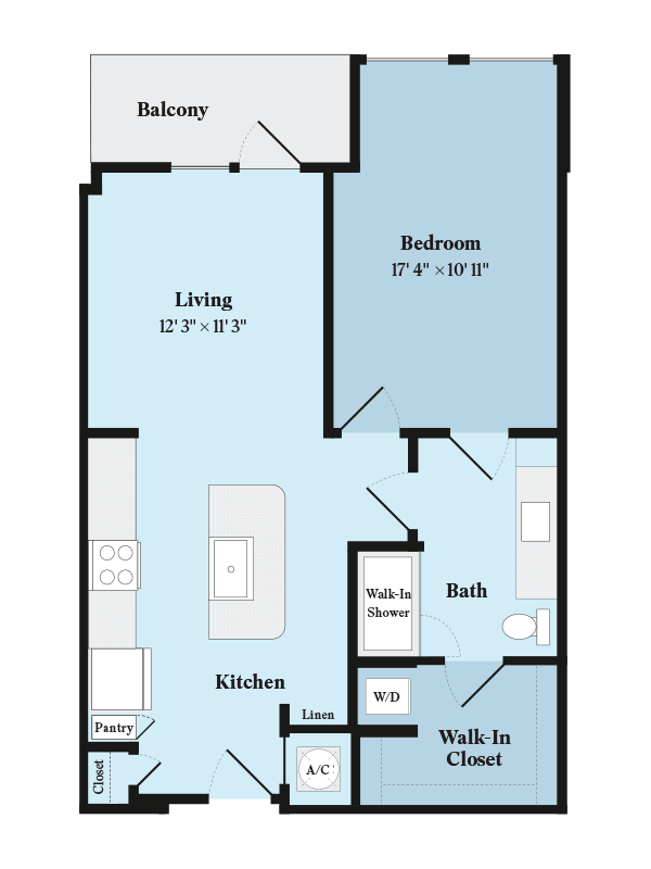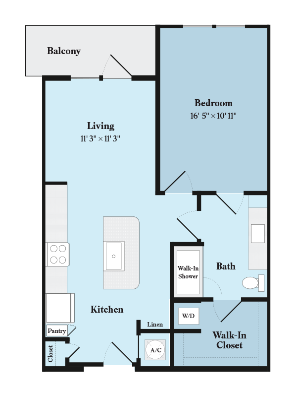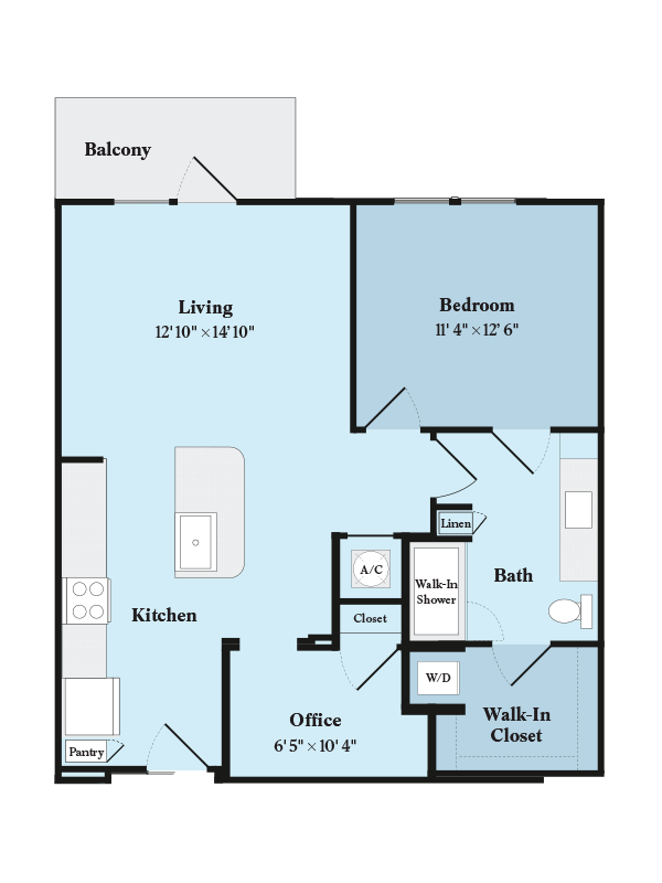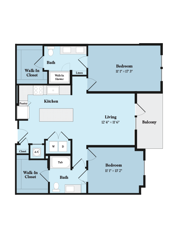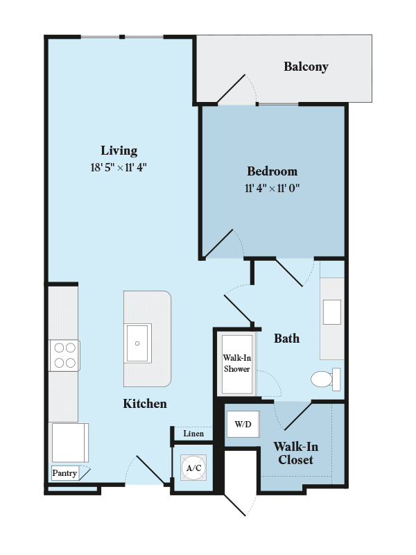 Modelo de apartamento: A5Desde $1,7841 Dormitorio, 1 Baño, 697 sq ftDisponible Ahora![]()