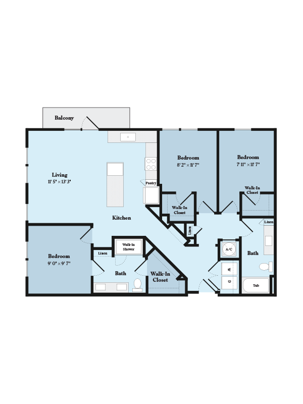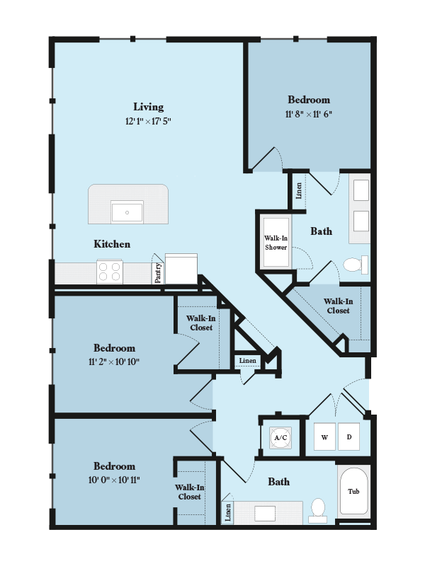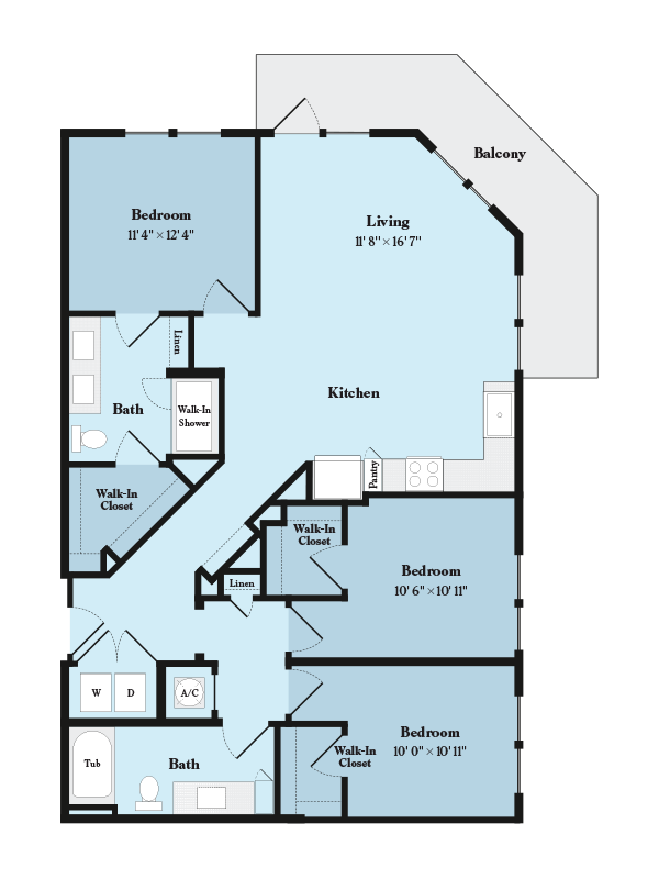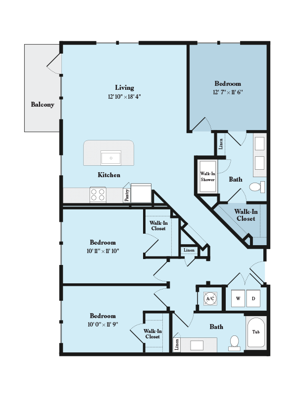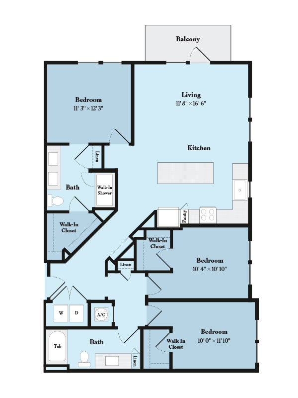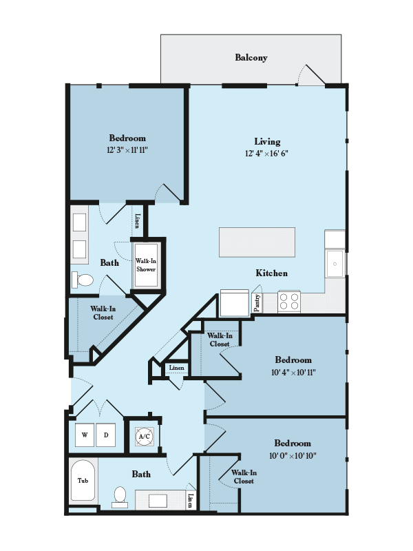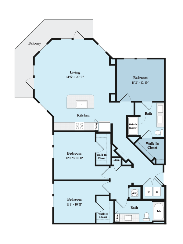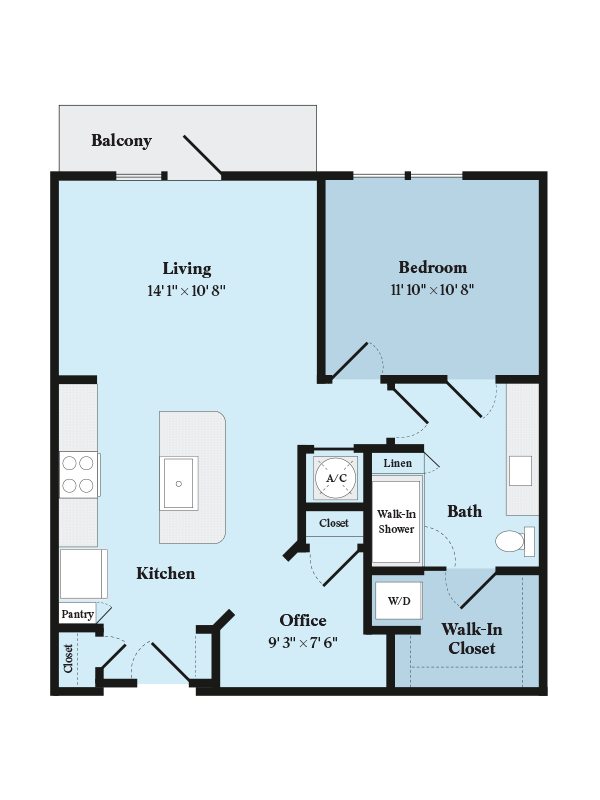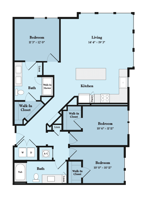 Modelo de apartamento: A5Desde $1,7841 Dormitorio, 1 Baño, 697 sq ftDisponible Ahora![]()