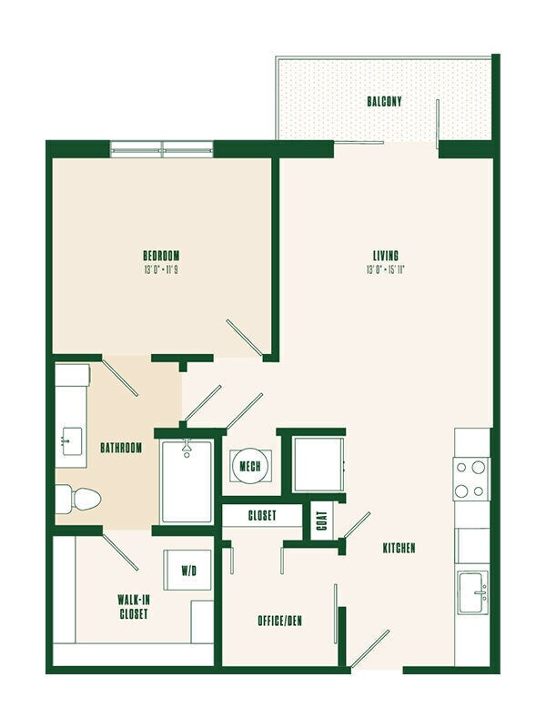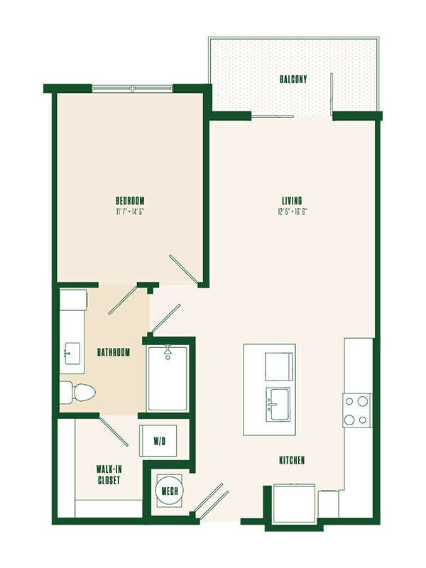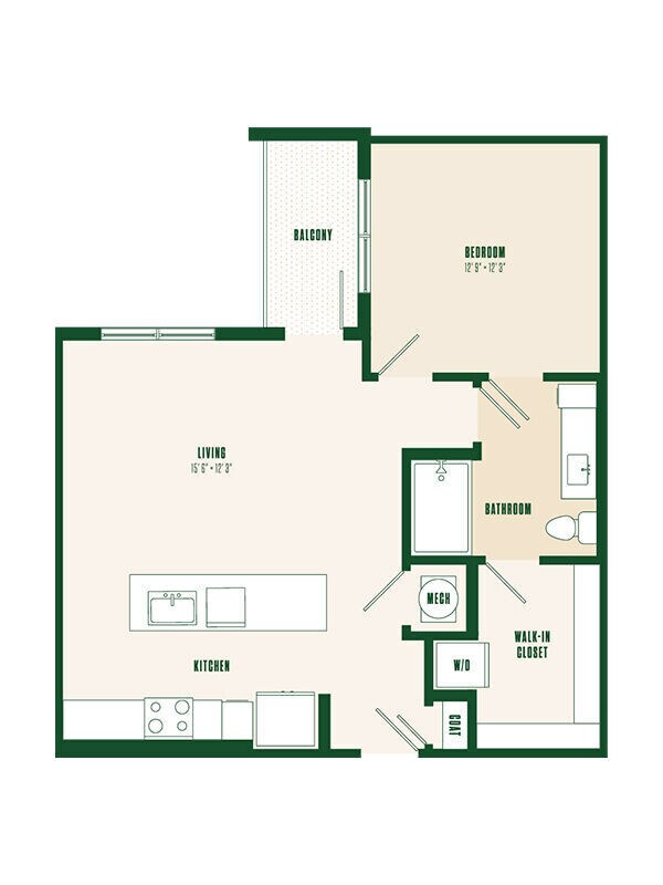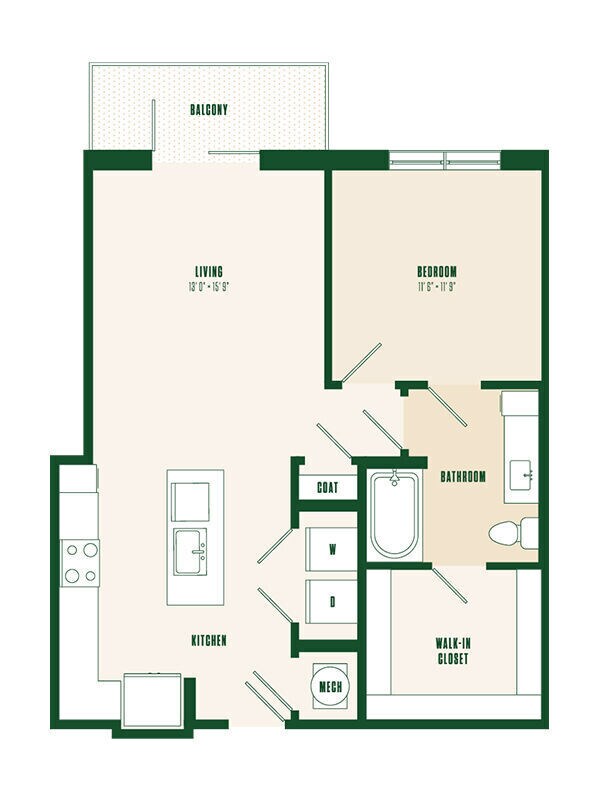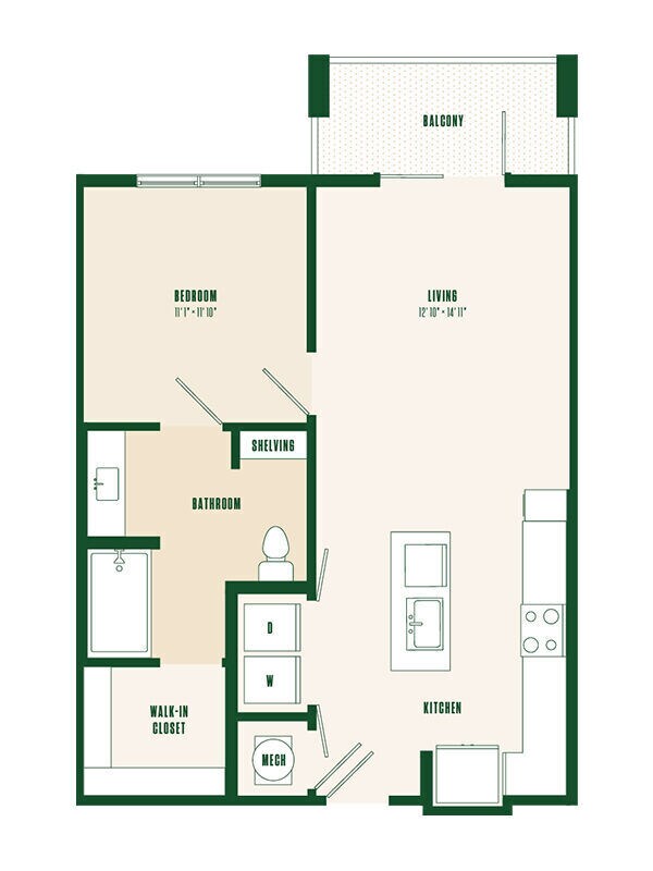 Estudio, 1 Baño, 600 pies²Disponible AhoraGalería del Modelo