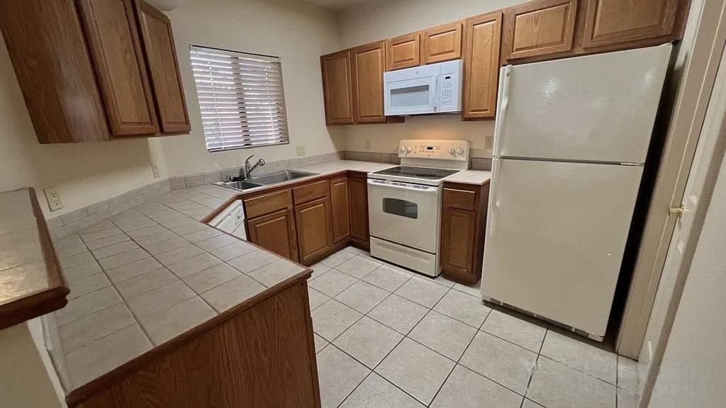 Charming 2-bed, 2 bath townhome in gated community with seasonal pool access. Features two spacious upstairs suites with private baths and walk-in closets—one is loft-style with an open half wall. Includes built-in office space, granite kitchen with stainless steel appliances, and open living/dining area with tile flooring and a Kiva-style fireplace. Enjoy a private patio, upstairs balcony, and in-unit washer/dryer. Small pets negotiable. (Repair cap applies.)