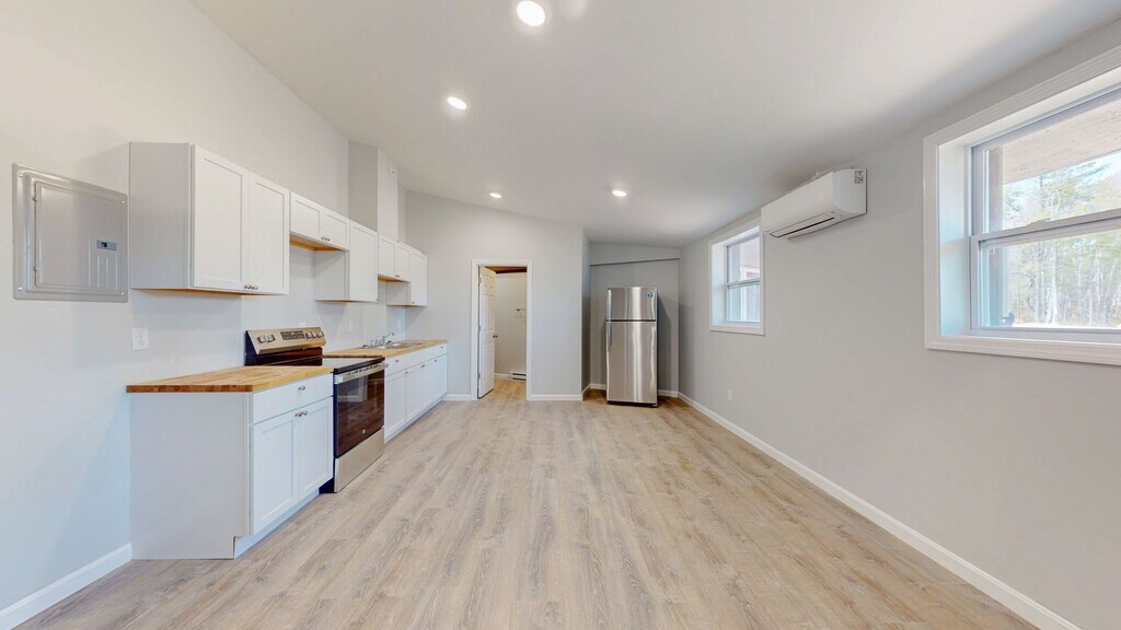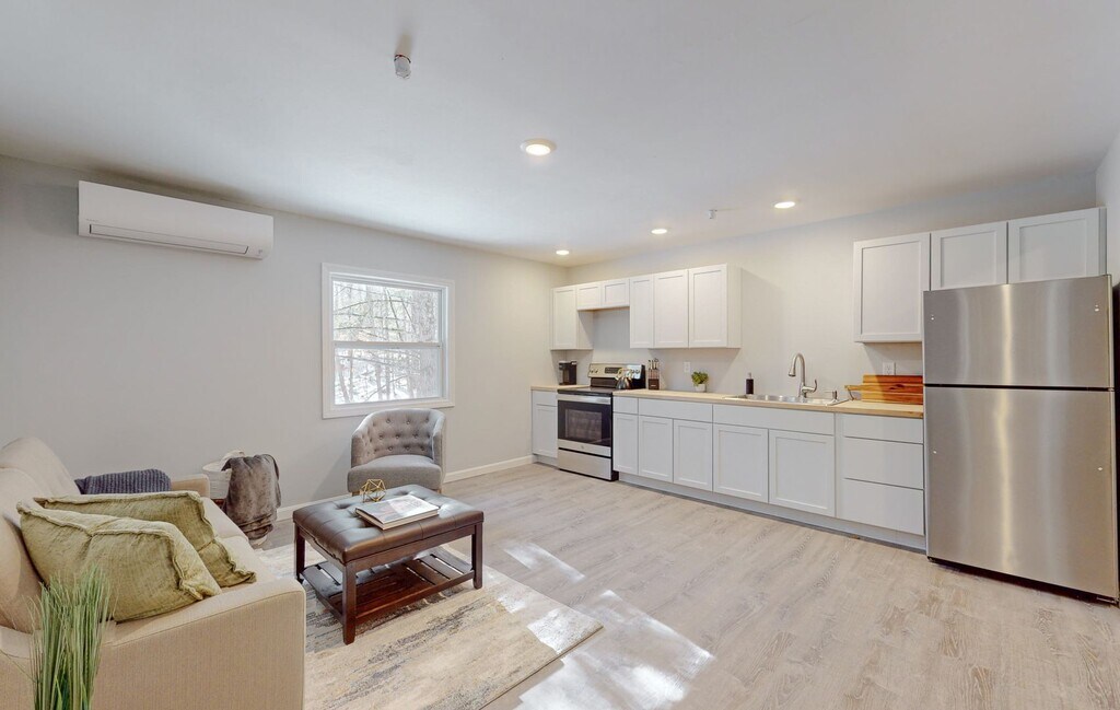 FIRST MONTH'S RENT FREE IF MOVE IN DATE IS PRIOR TO MARCH 1st! Completely Renovated 2024 1BR & 2BR Apartments | Pet Friendly | Now Leasing These apartments were completely renovated in 2024 - gutted to the studs. New kitchens with stainless appliances and butcher-block counters. New bathrooms, flooring, windows, HVAC, electrical - everything. You're getting new construction quality inside buildings with way more character than anything built today. The buildings are from the old Nasson College campus, designed by Elenore Pettersen (one of New England's first female architects and Frank Lloyd Wright student). Thoughtful architecture and unique layouts you won't find in cookie-cutter complexes, with brand-new interiors. We're on a 45-acre wooded campus with deer, forest views, and the Maine Rail-to-Trail a 5-minute walk away. Quiet and peaceful, but walking distance to downtown Springvale, 40 minutes to Portland, 35 minutes to Portsmouth beaches. New cabinets, butcher-block counters, stainless appliances, completely redone bathrooms, new flooring throughout, energy-efficient windows, brand new mini-split heating/cooling (efficient with room-by-room control), high-speed internet ready. Rent covers water, sewer, trash. You pay electric (includes heat/AC via mini-splits). Pet friendly - cats and dogs welcome. Free parking. Walking trails on property, Rail-to-Trail access, package receiving. These were Nasson College buildings that needed a complete overhaul. We renovated them in 2024, keeping the architectural character but modernizing everything else. Best of both worlds - historic buildings with kitchens and bathrooms that look like they were installed yesterday. Professionally managed by Puffin Property Management Equal Housing Opportunity