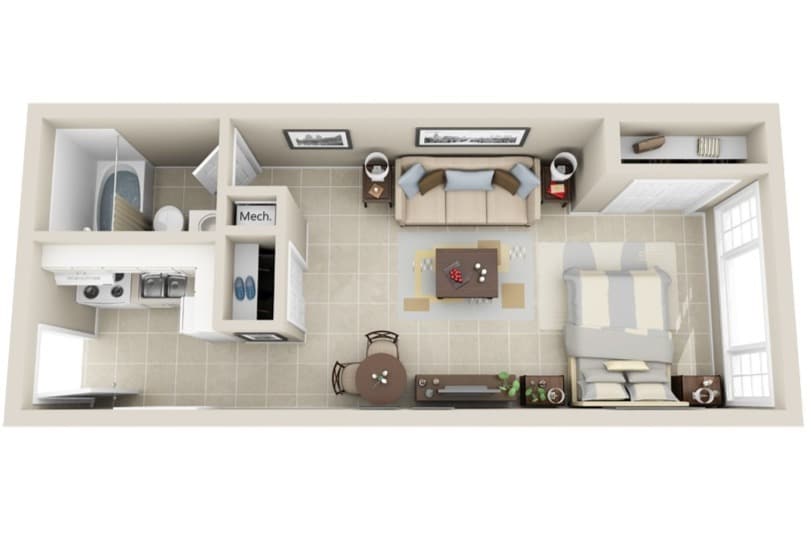 1 Dormitorio, 1 Baño, 761 pies²Disponible AhoraGalería del Modelo