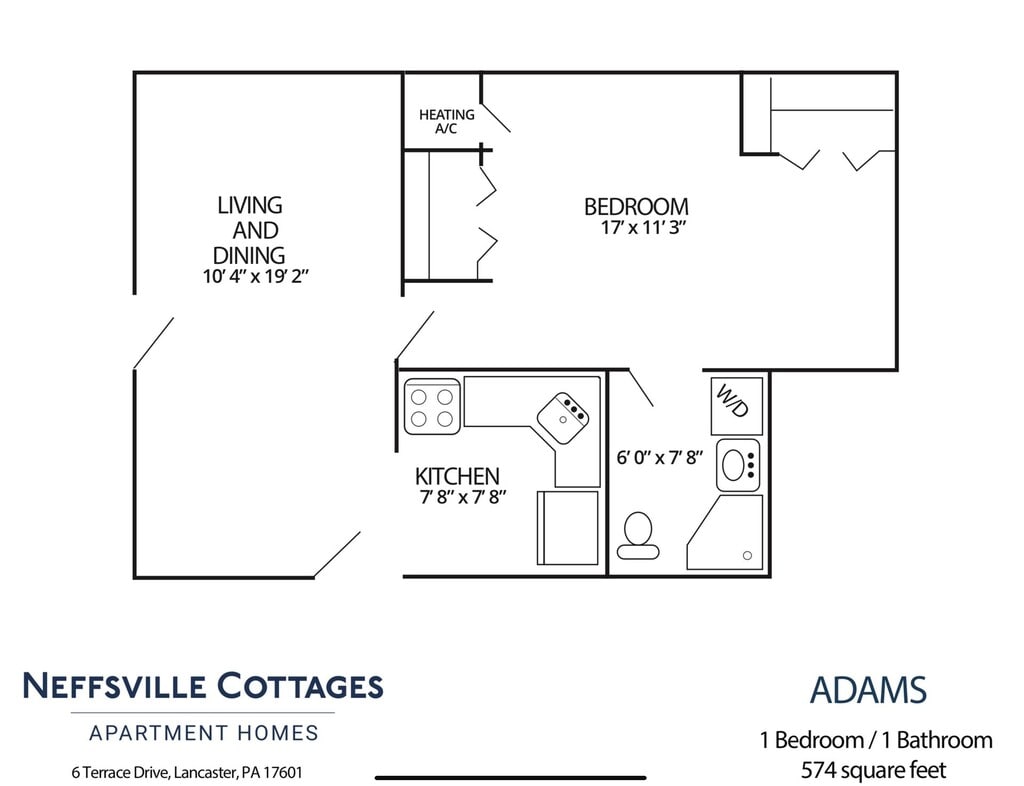 Neffsville Cottages ofrece apartamentos de 1 Dormitorio desde $1,550 con 574 pies cuadrados. Aquí está el precio actual y la disponibilidad: