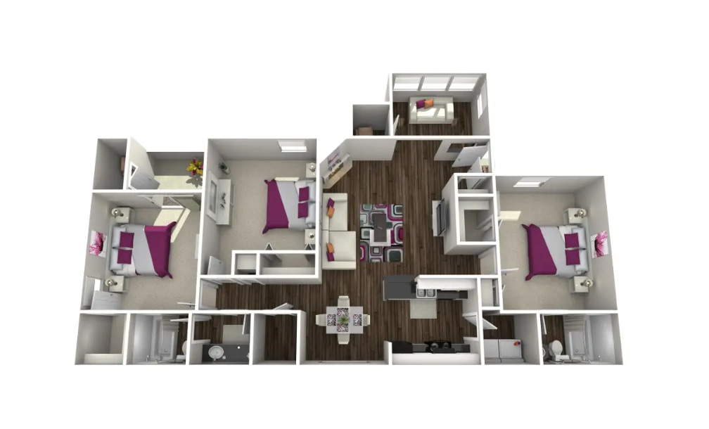 3 Dormitorios, 2 Baños, 1285 pies²Precio Mensual TotalDisponible Mar 7Galería del Modelo